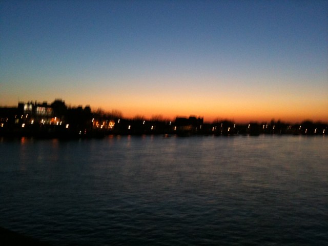 On Tuesday, as I and my friends walked over Putney Bridge, on our way to see Emily Barker and the Red Clay Halo at the Half Moon, the sun was in its last throes for the day. I had to stop and take a few shots with my iPhone.  Another opportunity to get some of those distorted images which sit halfway between a proper photo and a painting. I love ’em! Especially when you zoom in, things go all over the place.