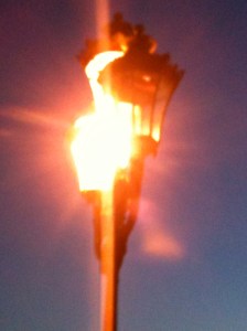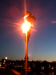 I love the colours: a product of the fading sunset and the street lights and way the zoom mixes them together.  All pure chance: I just zapped the shots as quickly as possible, hoping they’d turn out interesting.  While my friends waited patiently!