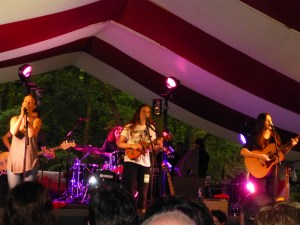 3. The contrasts in music. My favourite place was a place called the I-Arena, sponsored by the Independent newspaper. It was in the woodland area, across the lake from the main action. But it was the place to see the bands who might be big in the future, if they aren’t already doing pretty well. On Saturday, I saw in succession a psychedelic/ hard rock band from San Francisco called Wooden Shjips (bizarrely I thought they were Norwegian – why?) and then my favourite band of this year, the Staves, the trio of sisters who sing the most beautiful harmonies. Both were brilliant. But so different.