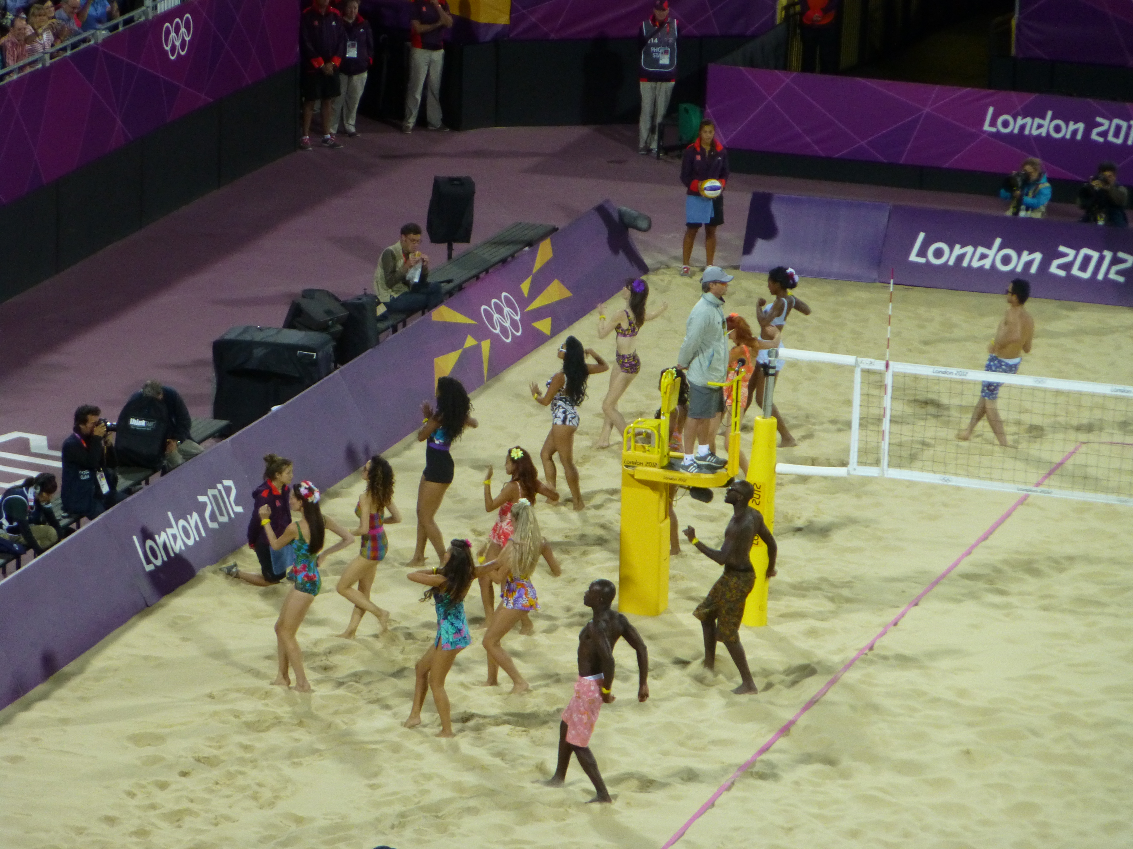 The evening was brilliant. The atmosphere was just so engaging. Everyone was enjoying themselves. Having a laugh. Enjoying the beach volleyball, but also loving all the music, the dancers, the rakers (smoothing out the sand), the Mexican Waves, that French rugby trumpet thing. The lot. It was just such a hoot.