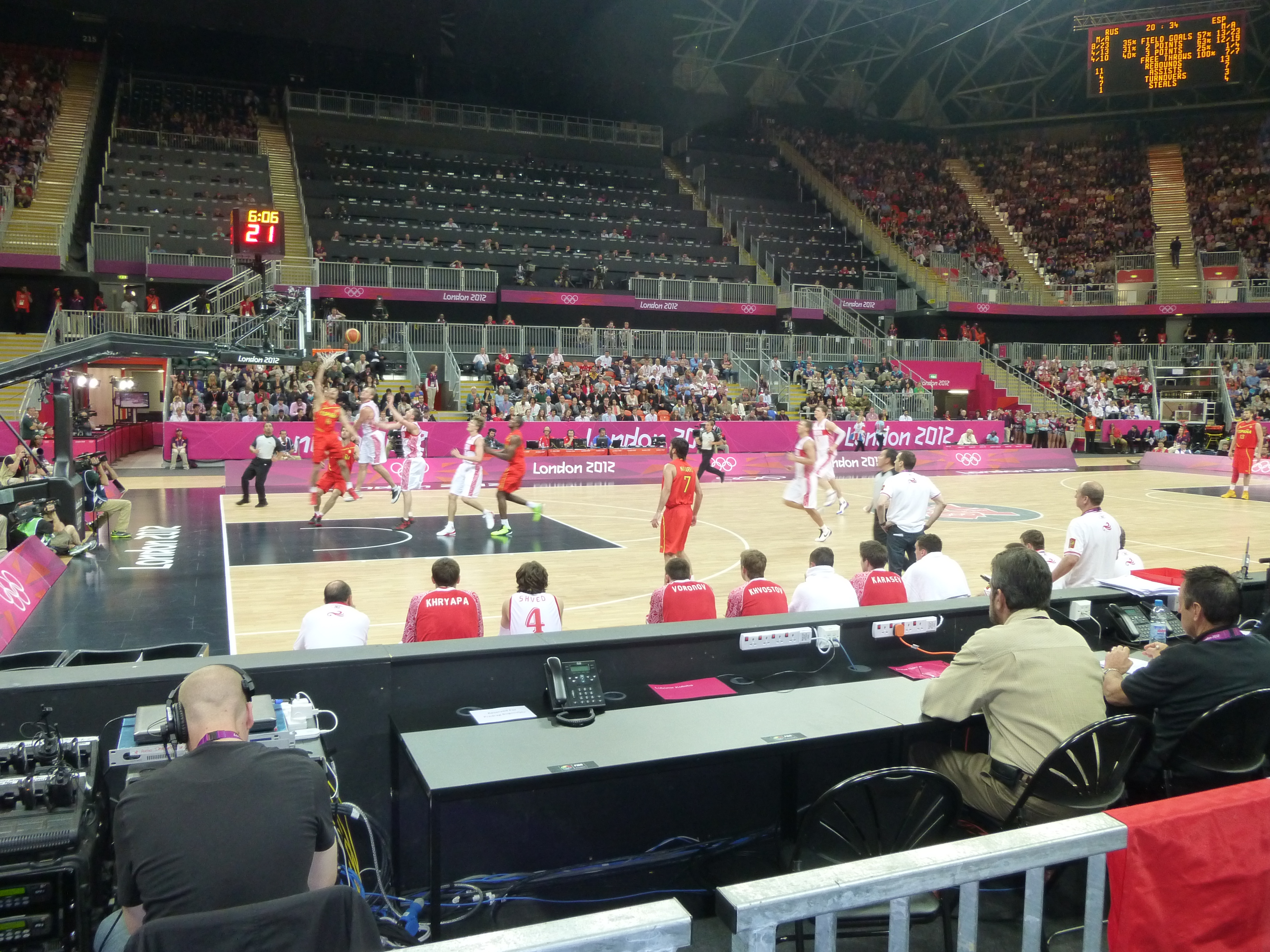 Spain v Russia, the second match, was on a different level. Spain were silver medallists in 2008. Amongst others they have the giant Gasol brothers, who both play in the USA, at the highest level. They skulked around with their beards and huge yellow boots. I got the impression that they expected to win quite easily, and the game started that way. Spain were winning 16-2 at one point, early on. But Russia clawed their way back mid-way through, then fell behind again, but surged at the end and snatched the game, 77-74. They were good and really impassioned, but I think the Spanish were a bit complacent, and should really have won.