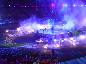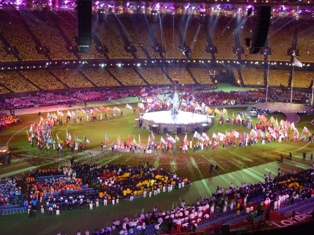 The athletes paraded before the televised ceremony at 8.30pm, so they were in their seats when it started, and TV viewers didn’t have to watch the rather dull scenes as people enter the stadium very slowly for a couple of hours. But I did wonder later whether the athletes felt that the ceremony wasn’t enough about them as a result. But I doubt it, given what a great spectacle it was.