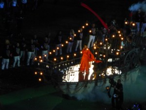 The main themes of the show were about the flames and the seasons. We had a helpful piece of paper telling us this. Otherwise, to be honest, no-one would have had a clue what all the processions and general weirdness was all about. Not that it mattered. It was all spectacular and fun!