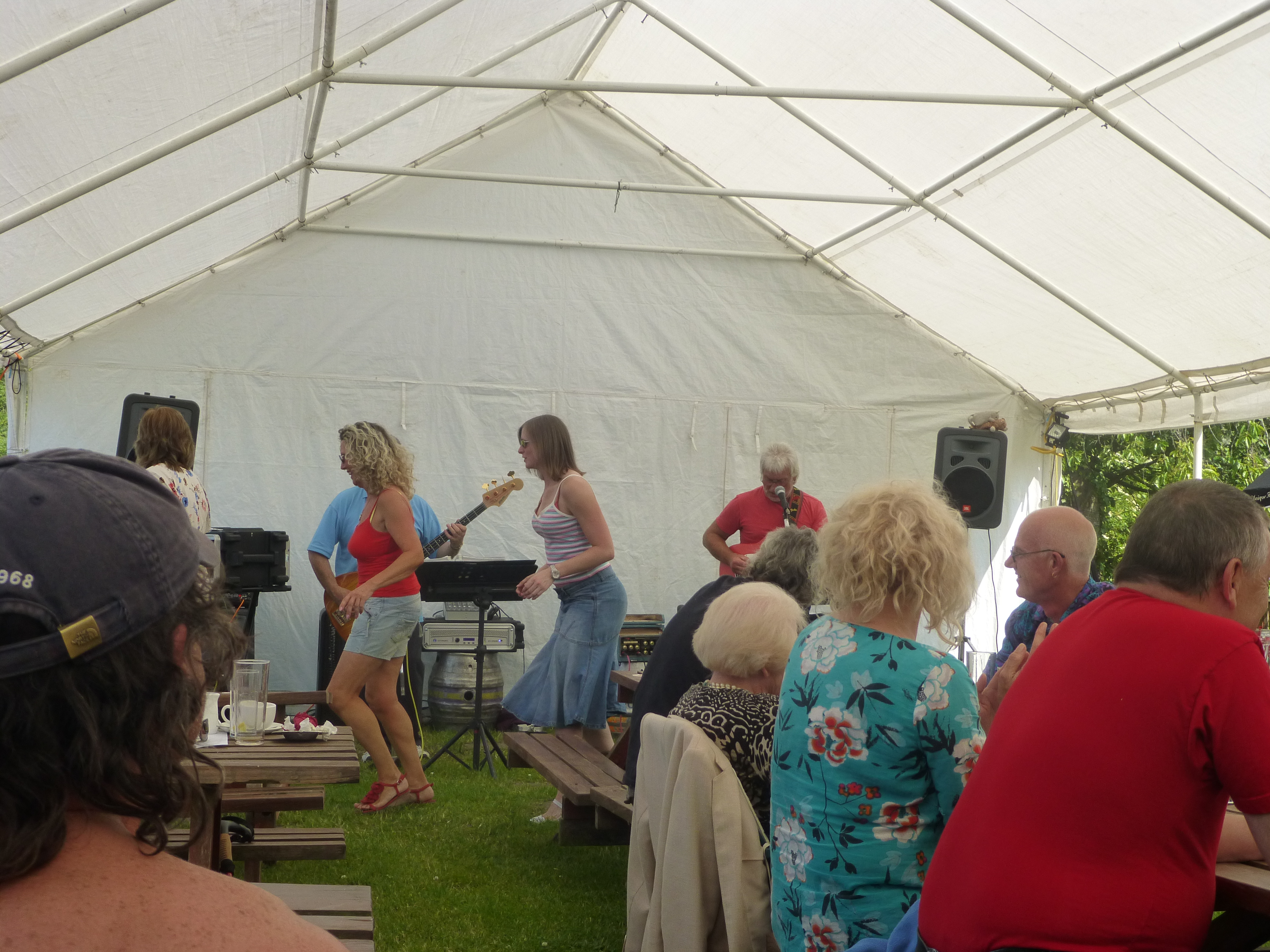 Oh, wow, I just loved it all. A band in a gazebo, on the Kennet-Avon canal, playing classic rock”n’roll and a bit of prog. On a sunny Saturday afternoon. In front of the grannies and the kids. A few of the mums dancing. The Dads drinking. I think it was a rugby club do. There were all sorts of interesting barrels of beer and cider, which we couldn’t try given the remaining miles to Devizes. (So sad!). The Waterfront Inn.