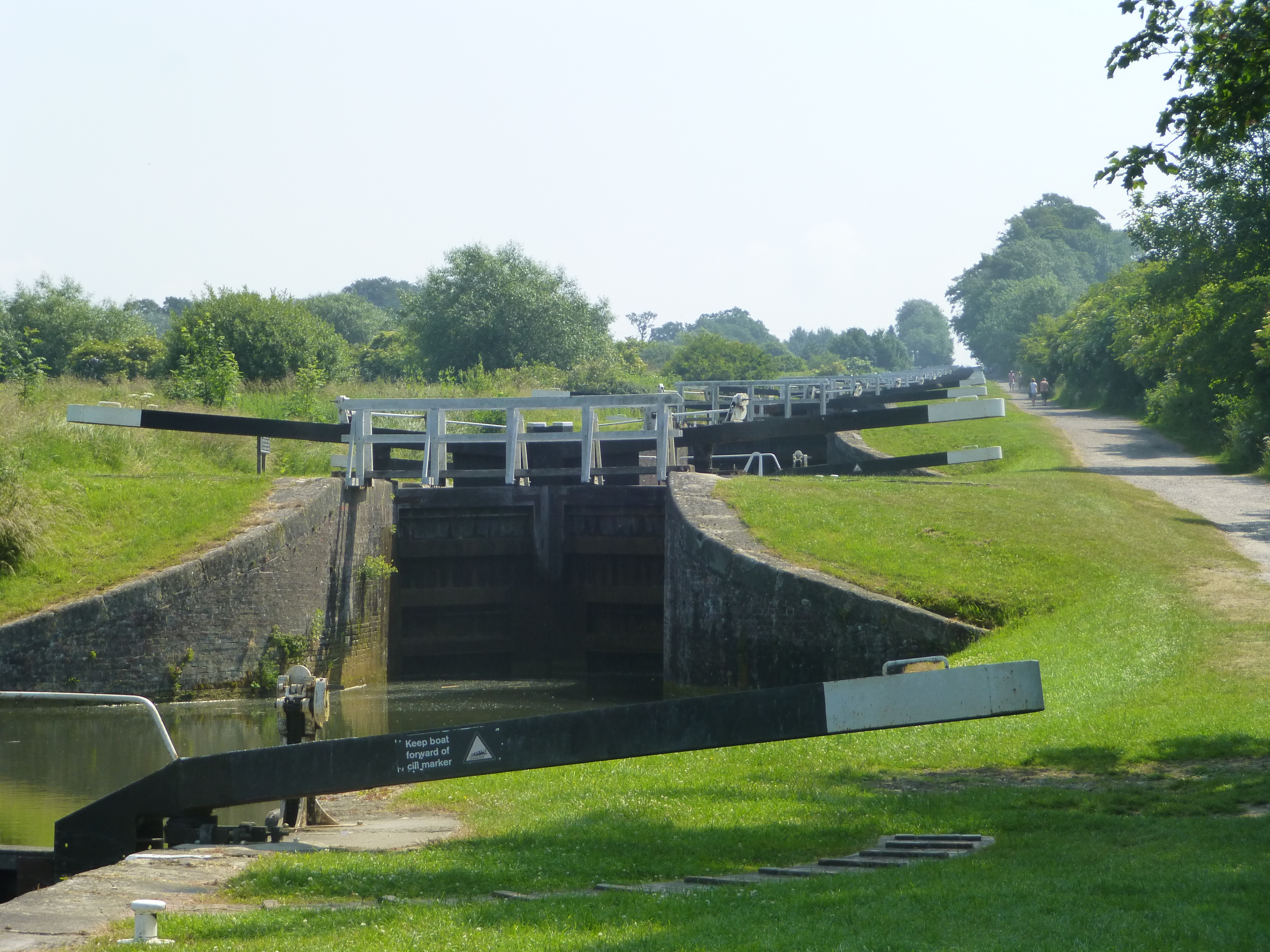 The first of those engineering feats was just outside Devizes. Downhill for us. Uphill for the canal, and therefore a need for locks. Lots of locks! Fifteen in swift succession on one hill, Caen Hill. I wonder how long it takes to get a barge through all of those. I did also wonder why they din’t build the canal around the bottom of the hill. Maybe they couldn’t. These photos only begin to capture the sight available to the human eye.