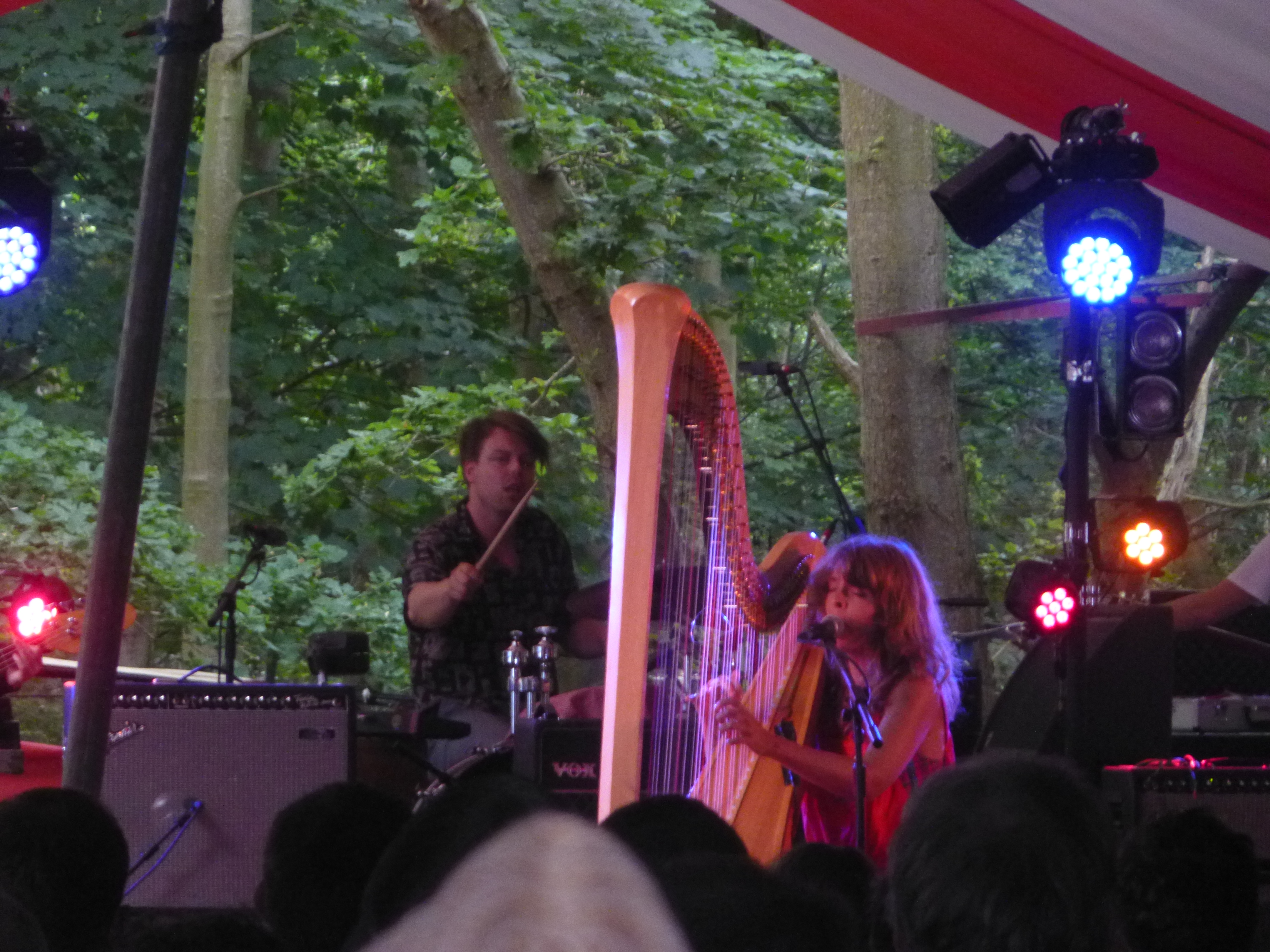 The early retreat gave us a chance to wander back to the iArena to see Serafina Steer. She played harp – but wasn’t like Joanna Newsom. She was accompanied by bass and drums and sang wistful pop songs. The harp quite upbeat. Dare I say she looked a bit like a young Stevie Nicks? Well she did. A8/B7.