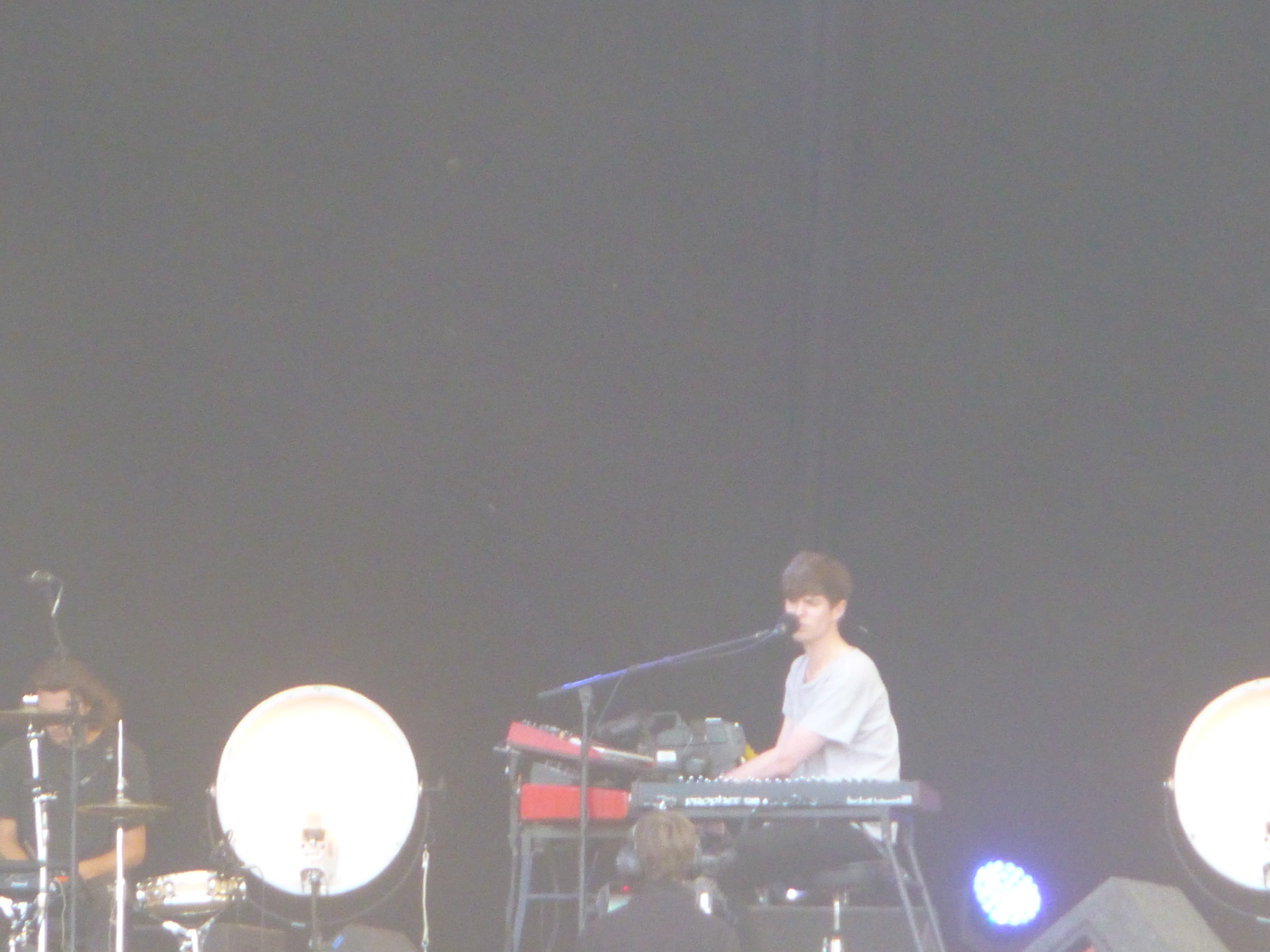James Blake was next, at the Obelisk. In the sunshine. Maybe not where you’d want to hear his intimate, jazzy, broken up sounds, full of unusual, but subtle twists and turns. With a voice full of sweet angst. Would it work at five o’clock on a sunny Sunday afternoon? It did, and then some. It was awesome, one of the best, if not the best things of the whole festival. The experimentalism of his sound was ramped up. The sounds exploded from the beat box, breaking up ballads, delivering dubwise sounds, techno/dubstep interludes, constantly surprising and intriguing. And all around that, his aching vocals and the subtle guitar and drums of his partners. A rich, truly engrossing performance. Kieran and Jon agreed! A10/B10.