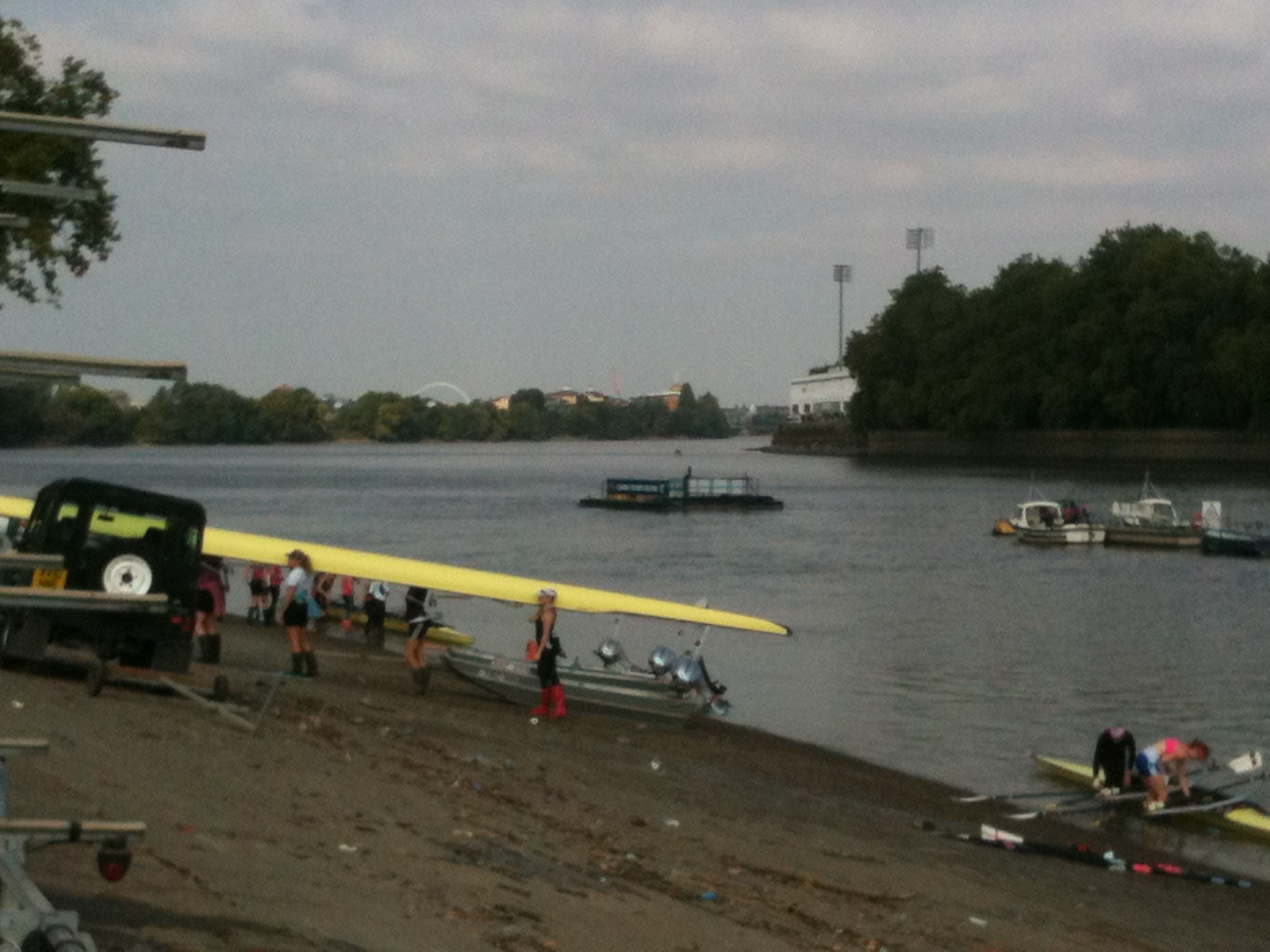 And then, a scene from my favourite bike ride: from Kew Bridge down to Putney Bridge along the Thames towpath – and then back home via Fulham, Hammersmith and Chiswick. At Putney there are loads of boathouses. In the background here you can see Fulham’s football ground, Craven Cottage, and in the distance, Wembley stadium, which is miles away. A bend in the river and no tall buildings allow a glimpse of the national stadium.