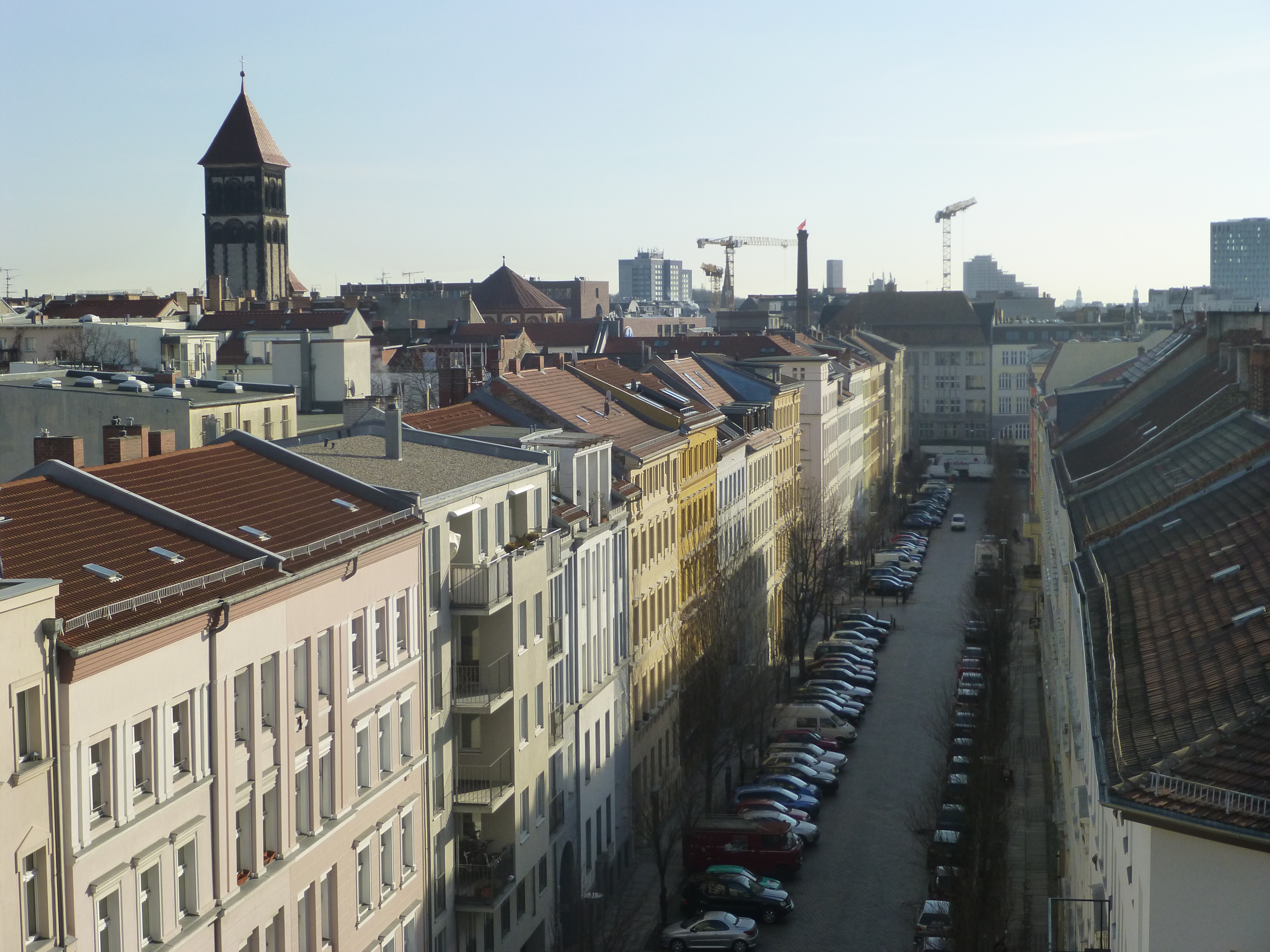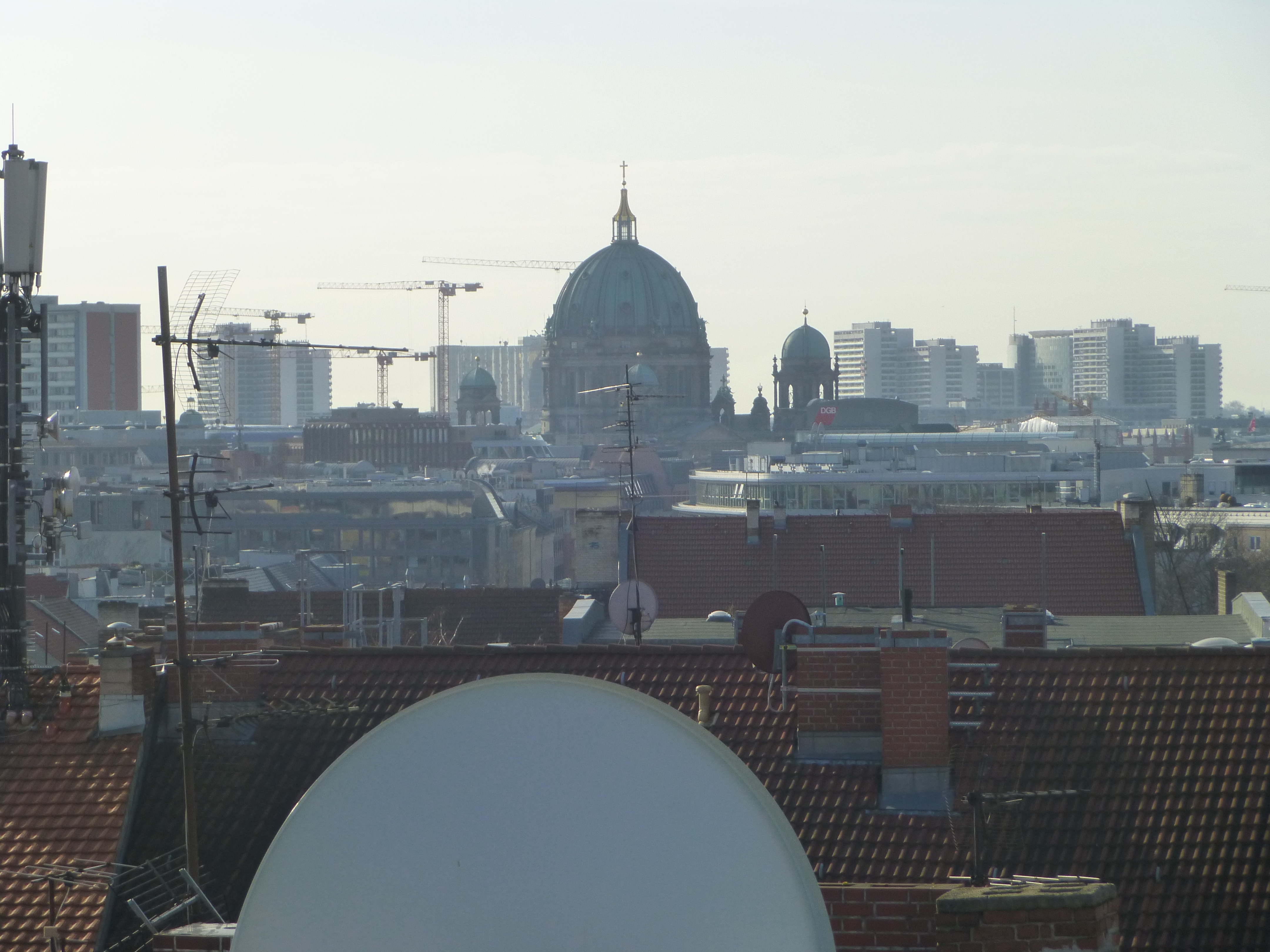 To start, a few shots from the rooftop of the apartment block where we stayed, courtesy of Circus apartments, in Choriner Strasse, in the Mitte district, just up from Rosenthaler Platz. East Berlin when the city was divided. Now very much the centre of town.