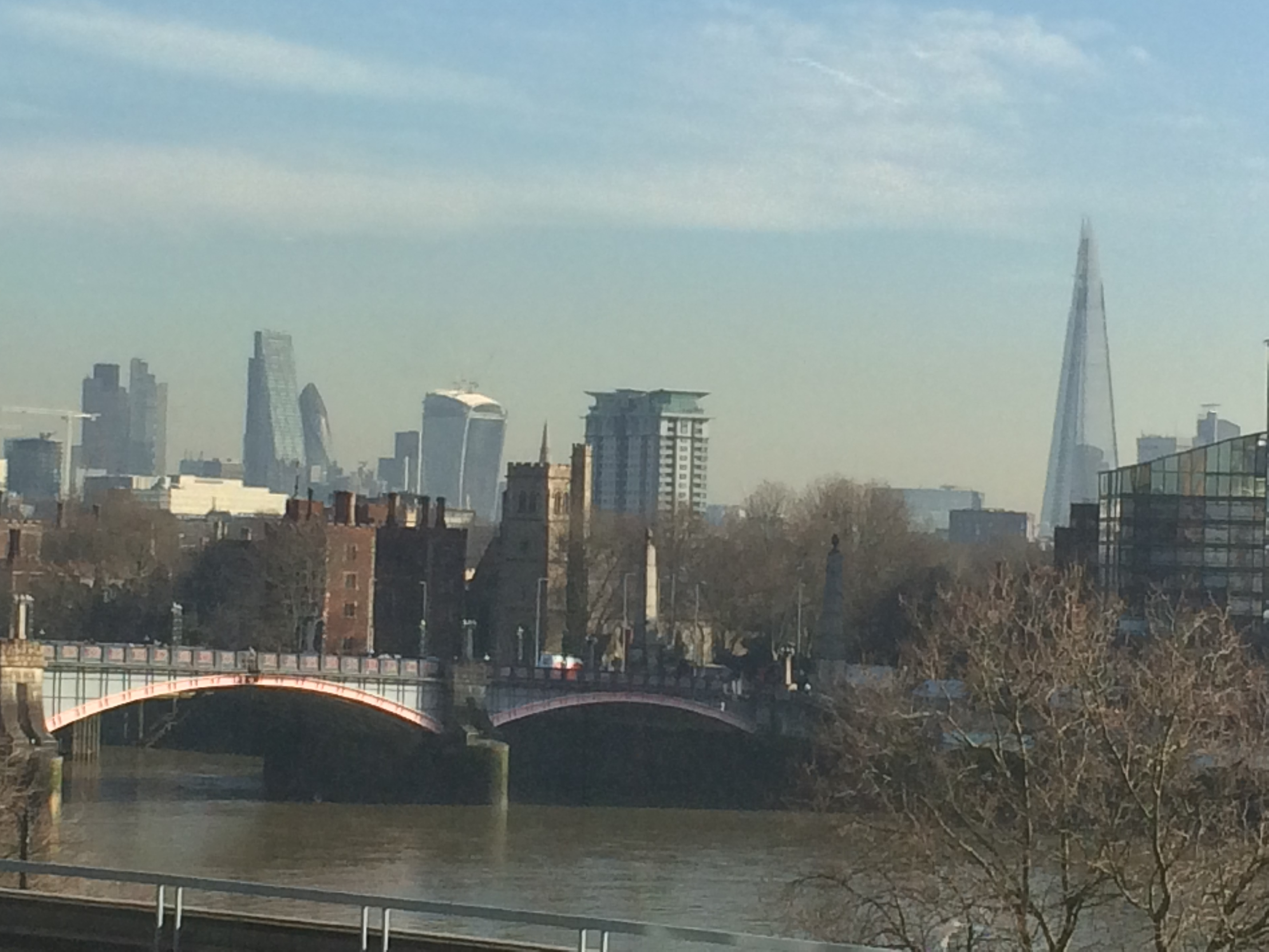 I took this photo with my iPhone through the window from an office on Millbank, near the Tate Britain. I like the layers: the tree, the river, Lambeth Bridge and Palace and then the towers of the City and, of course, the Shard, just over the water…