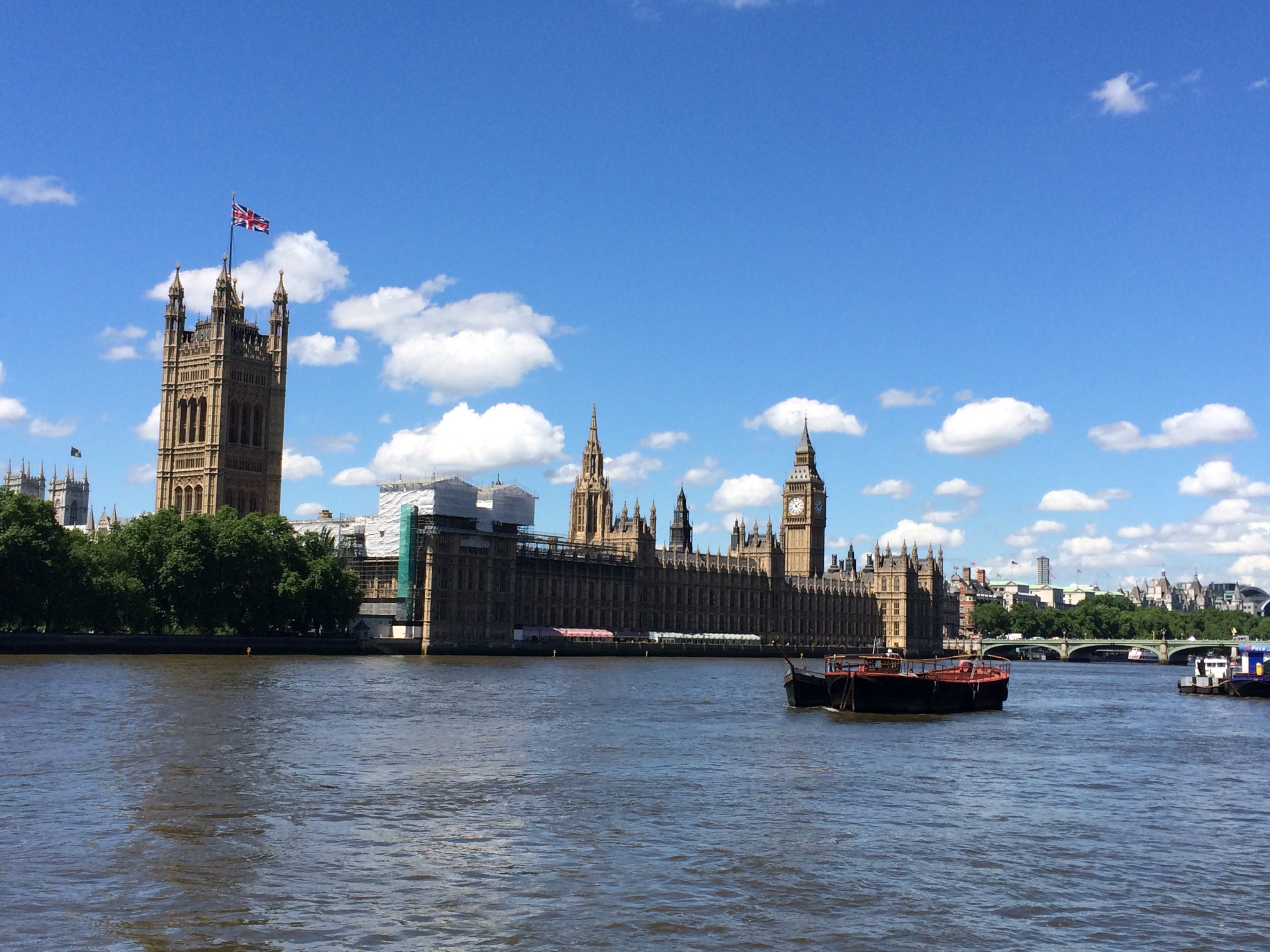 The Houses of Parliament from the other side of the river, on Albert Embankment.