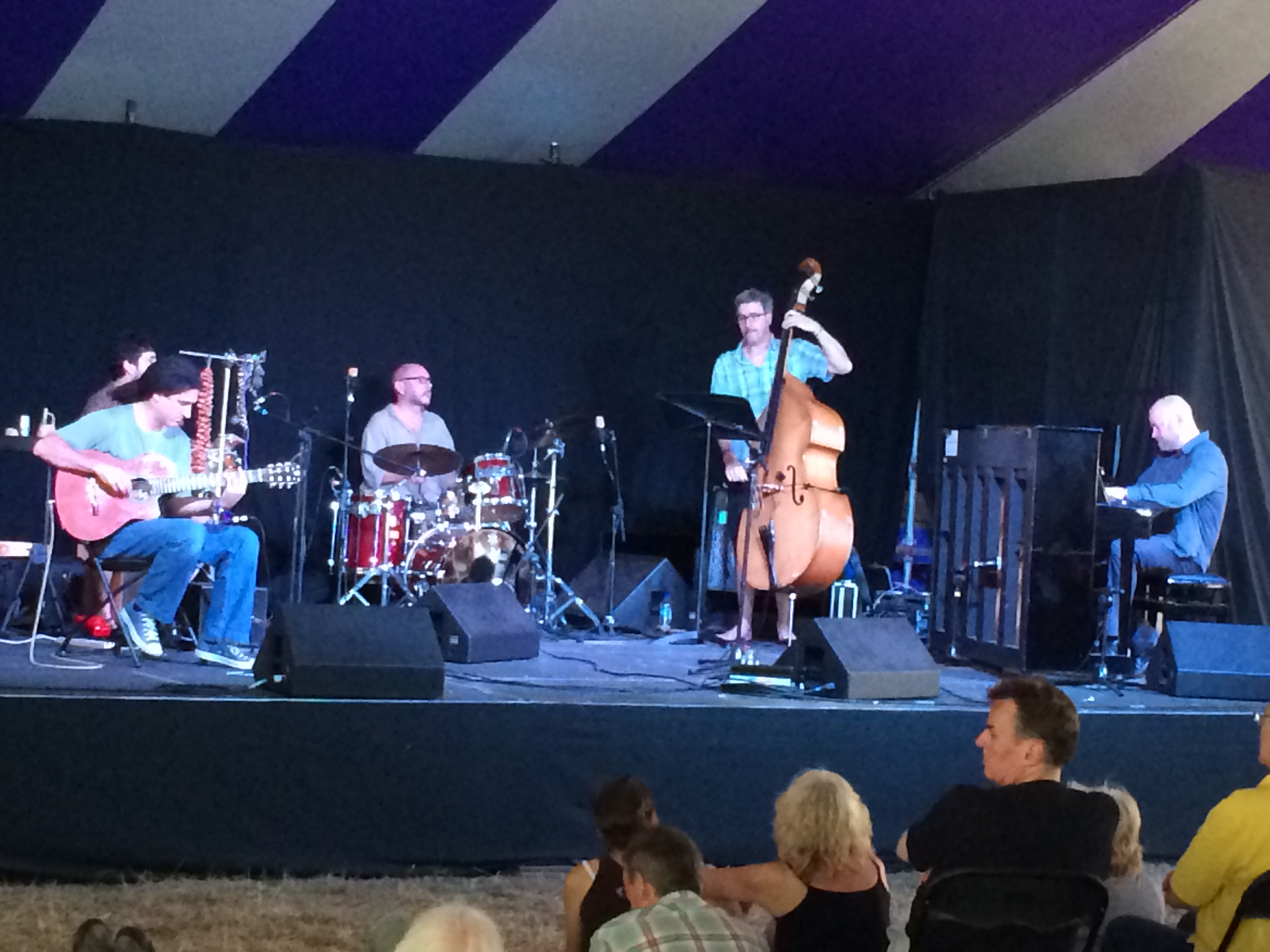 There are two music tents. The main stage, in the picture above, tends to feature big band jazz, the favoured sound the be bop of the fifties and sixties, with maybe a tinge of Latin thrown in. Traditional stuff.  The second stage is more adventurous and intimate. We saw a really good band there today, called the John Crawford quintet. Latin Jazz is the easy summary, but within that there was a real variety of sounds and styles, drawing on the heritage of South America and Southern Europe. The guitarist, Guille Hill was superb. He is from Uruguay. John Crawford is the pianist and song arranger. I’ll be looking out for future gigs.