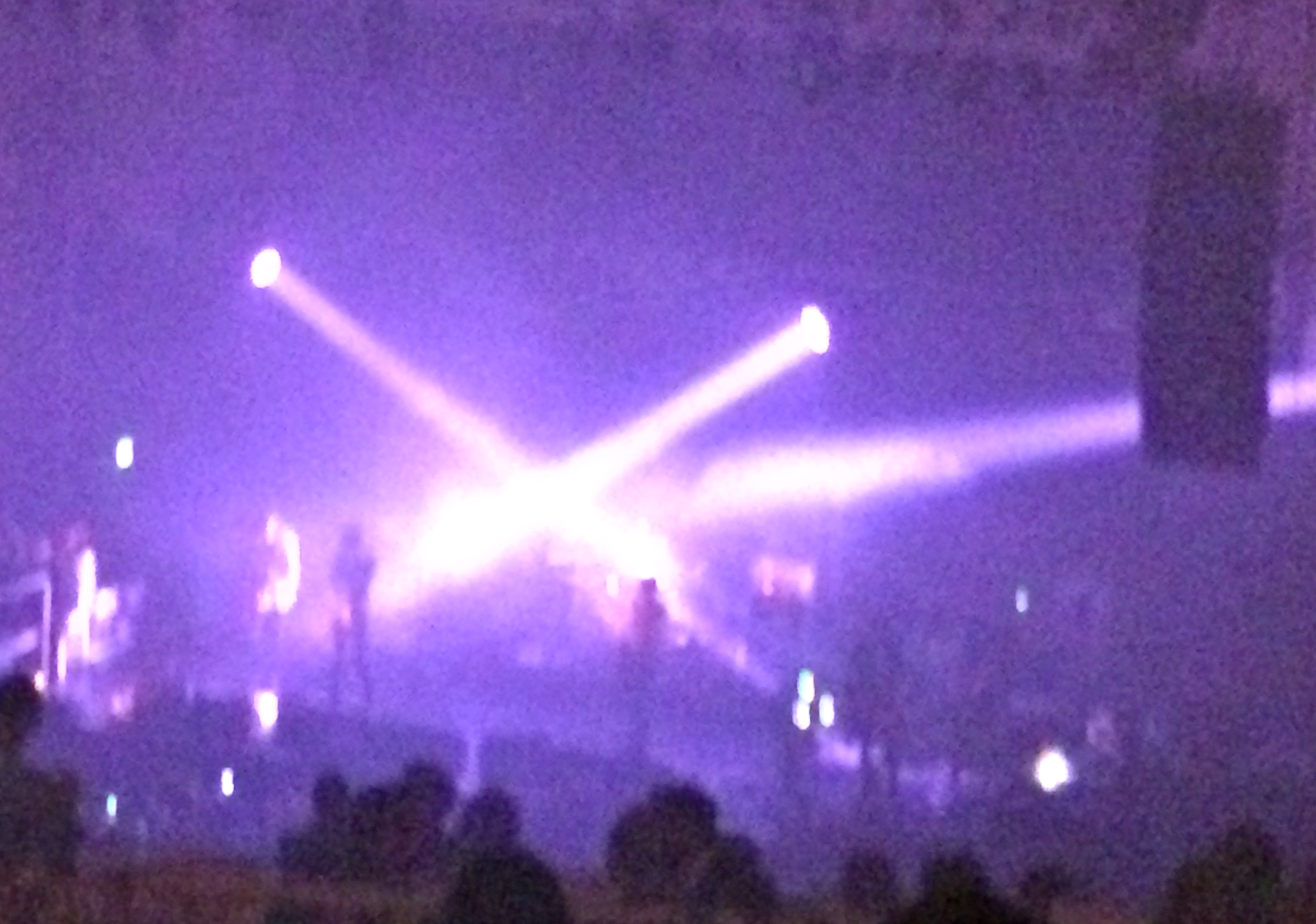 And then The Horrors. Their show is an experience – the big, swirling sounds, the lights, the dry ice, the shadows. The band don’t expose themselves – for the most part they are silhouettes behind the flashing lights. It’s a powerful, but also quite detached presentation. The guitars soar, the keyboards scream, the drums pound furiously. And the lights, the lasers, get in your face. It’s big. It’s impressive. But, you know, there aren’t that many tunes. Singer Faris Badwan surfs of the waves of sound, all in black, emerging from the haze. A few people around us, sitting near the back, maybe not committed fans, not knowing what to expect, did leave halfway through.