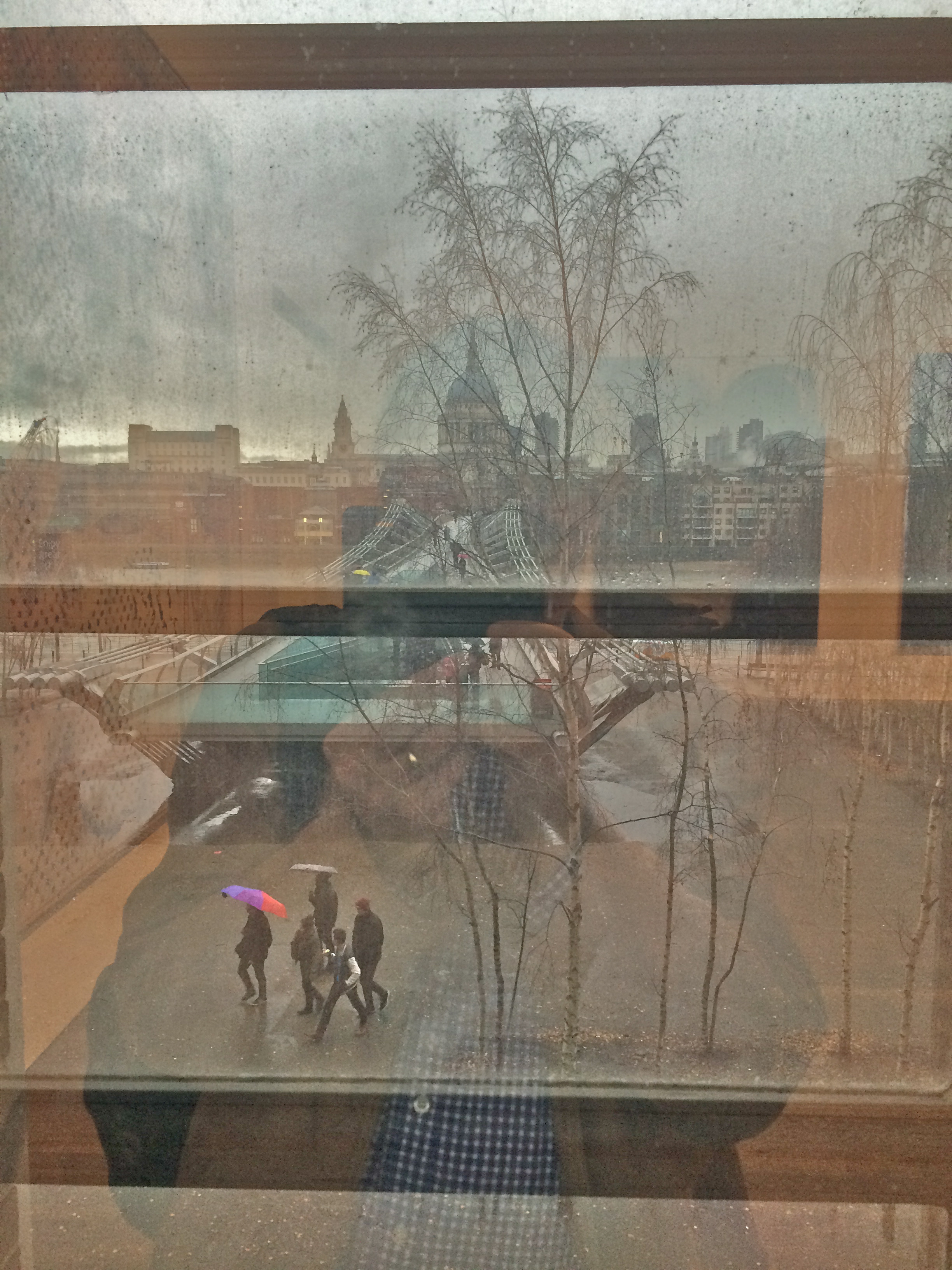 I went to the Sigmar Polke exhibition to the Tate Modern yesterday. Took this shot out of one of the windows on a gloomy, rainy morning. The Millenium Bridge and St Paul’s centre ground. Treated a bit on iPhotos for effect. Kind of inspired by the exhibition!