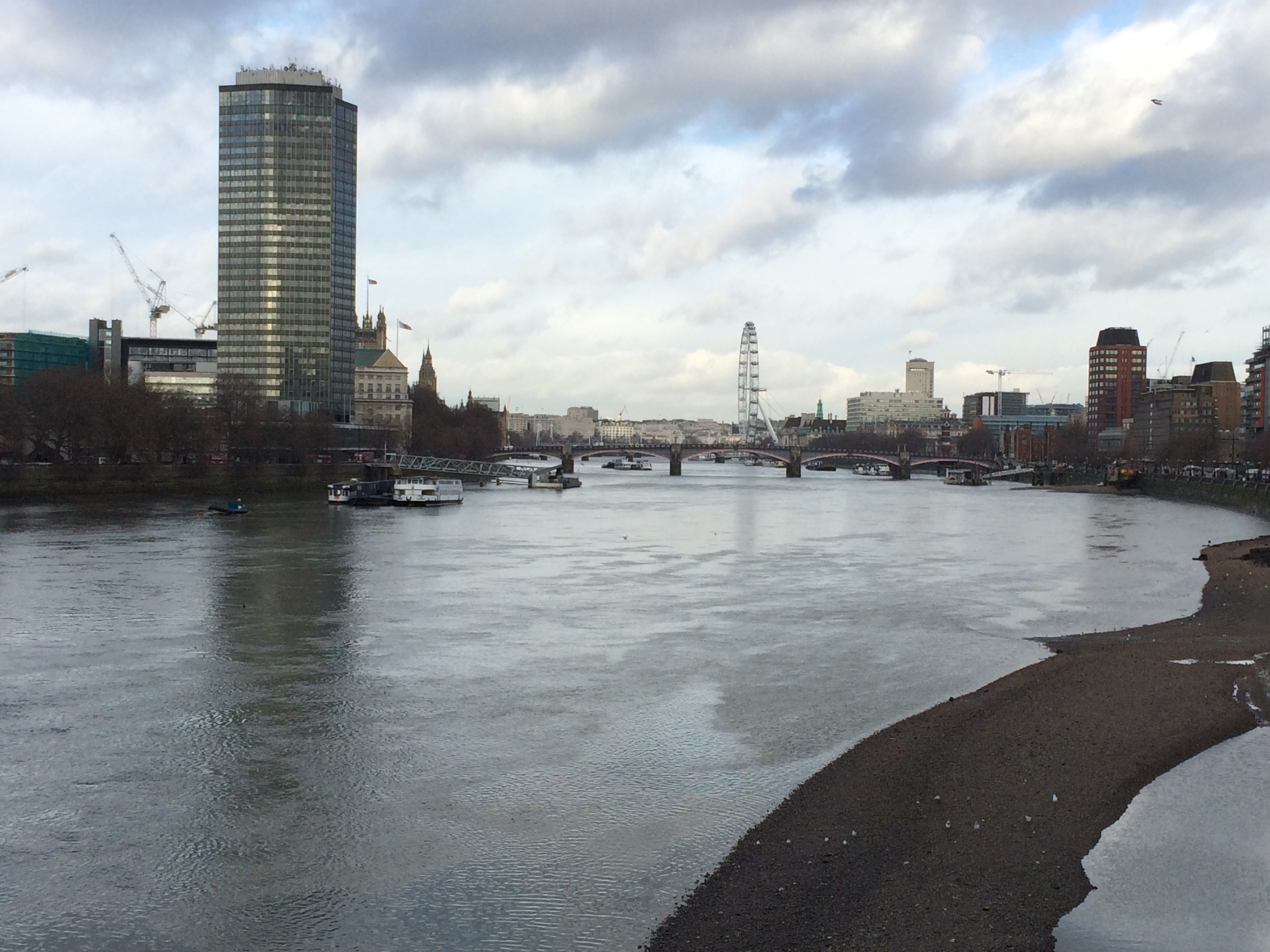 A different day to the photo in No 86. This week I hosted a drink at work to mark 5 years in my current job. I’d been down to the Majestic wine warehouse in Vauxhall, under the railway arches, to order some wine and glasses, and on Thursday lunchtime I took the glasses back. I walked back – we are just on the other side of the river. It was a windy, bracing day, and I stopped to take a few photos on the way. First, the rather interesting Vauxhall bus station (really!); then the ever fascinating Thames and its surrounds. Here are a few. All exactly as the iPhone took them.