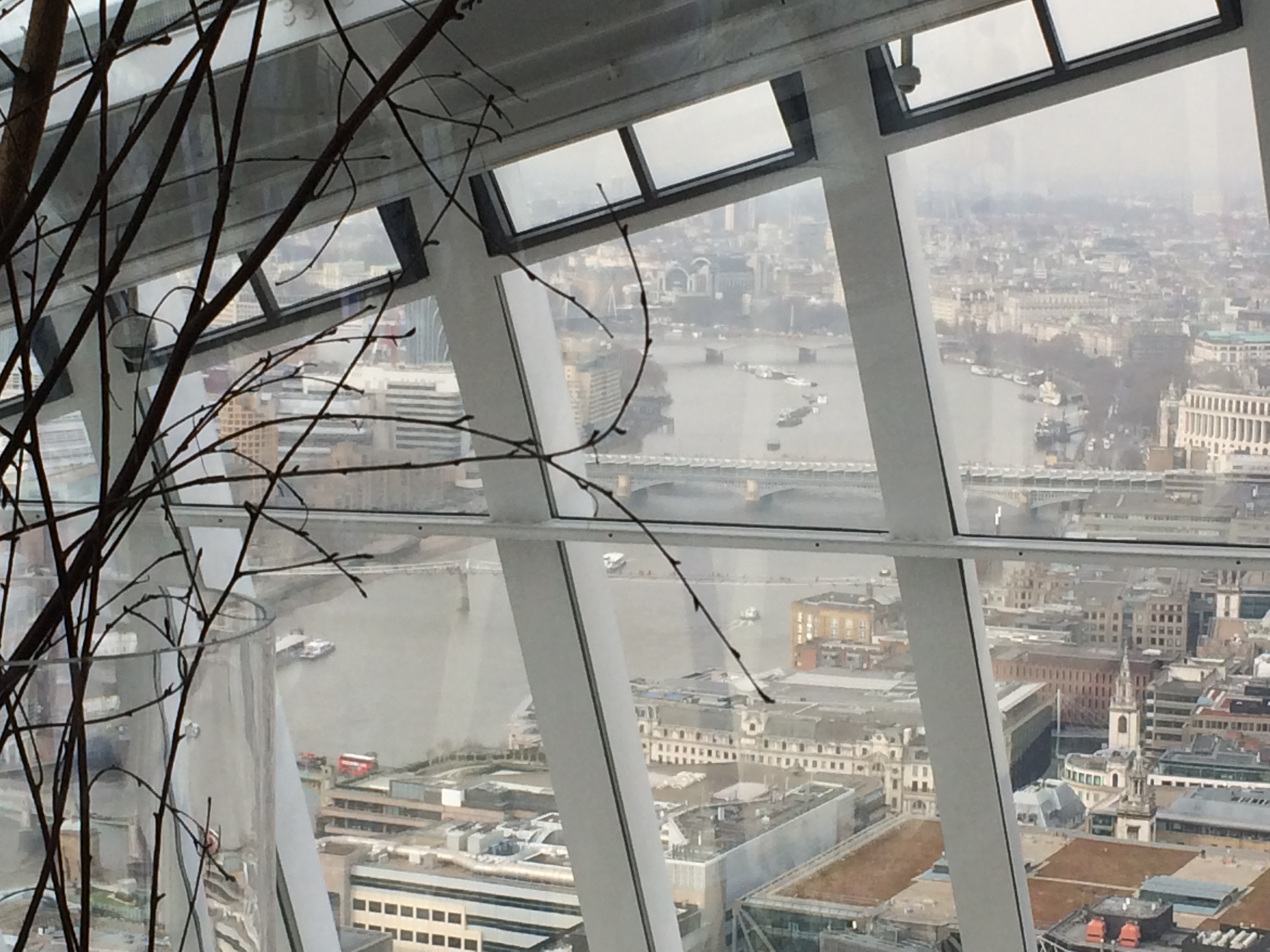 The Walkie Talkie, 20 Fenchurch Street, is one of those iconic skyscrapers that have grown up in the City of London and nearby, in recent years. Since the start of the year, you can go up top to the Sky Garden, to look around and eat and drink. On level 36 (of 37) is The Darwin Brasserie, and I went there with my good friends, Dave, Jon and Tony, for breakfast last Friday, before our annual “Virtual Cheltenham”, where we enjoy the Gold Cup and other races, without actually going to Cheltenham.