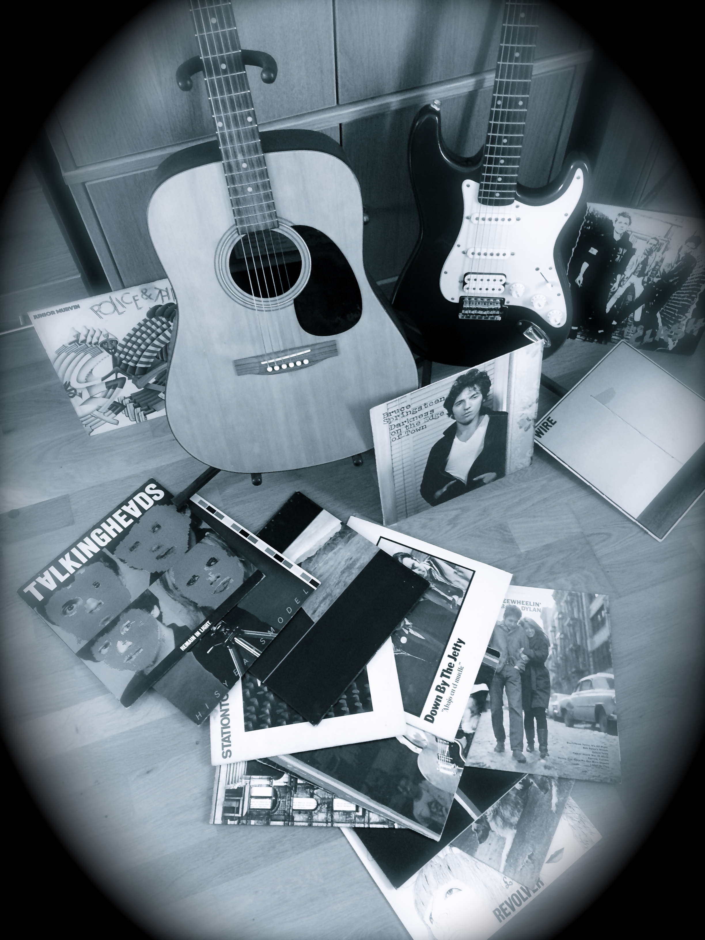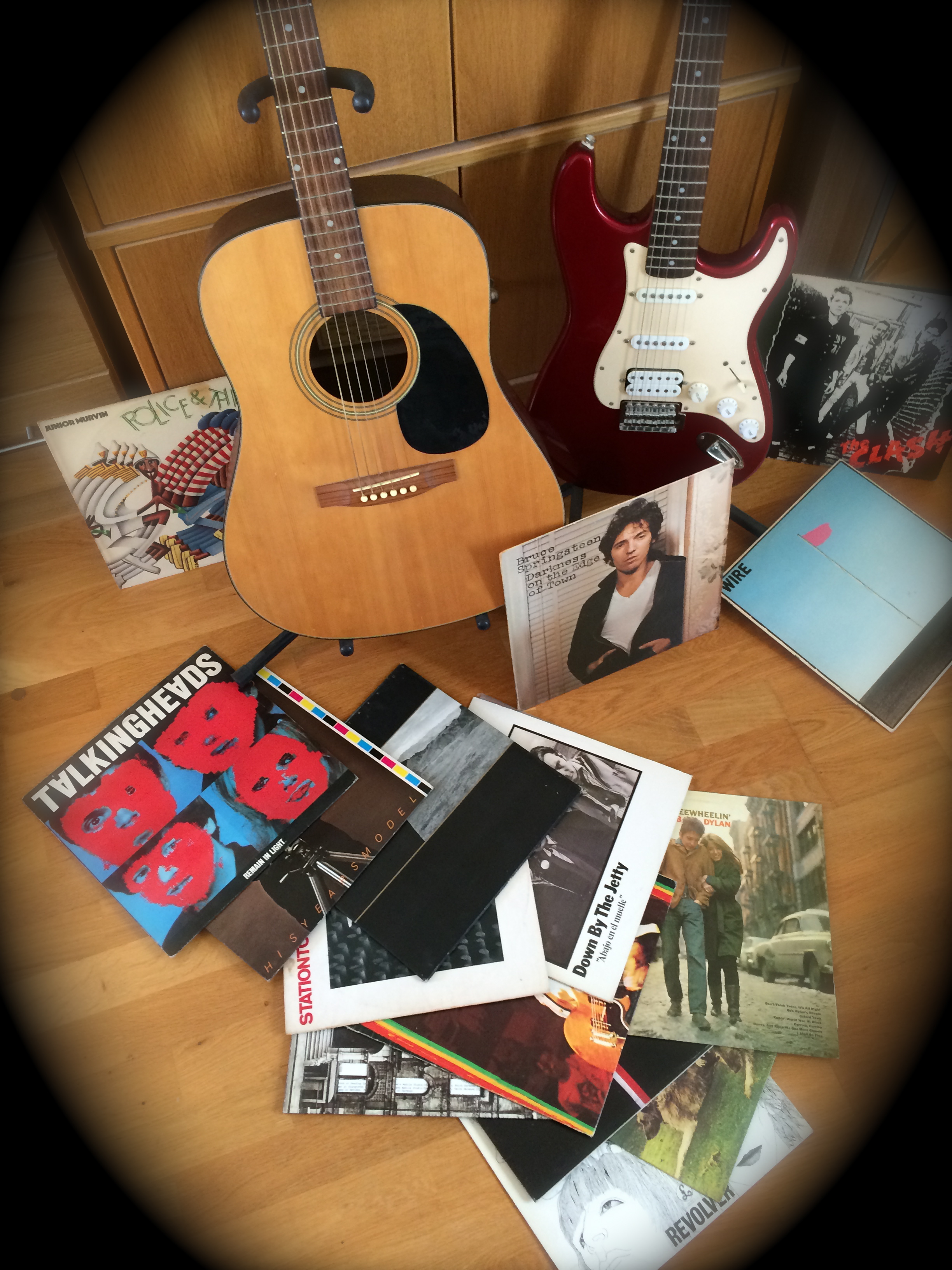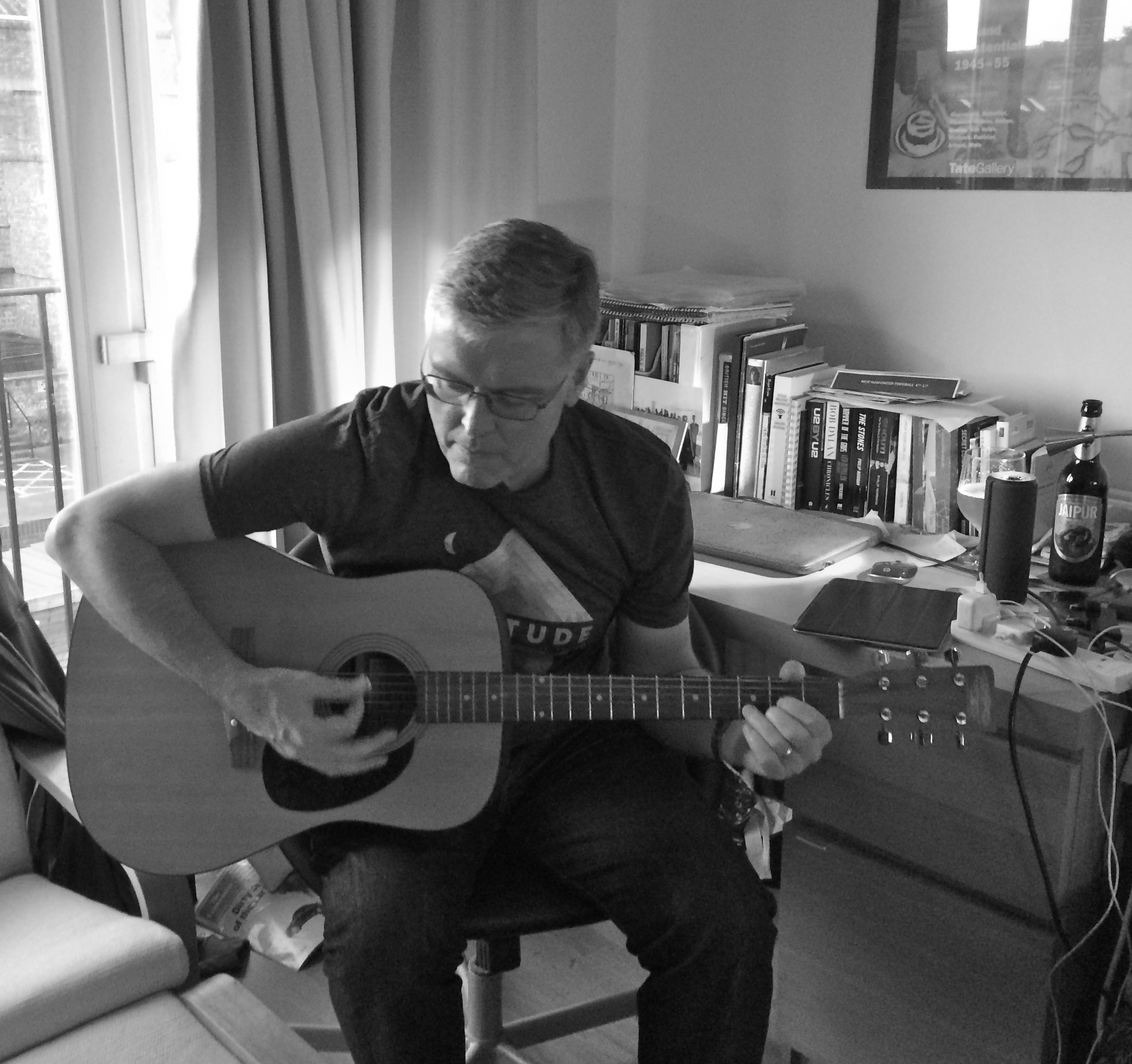 For the back cover I thought about nicking the sort of thing Bob Dylan did on “Bringing it all Back Home” and Oasis did on “Definitely Maybe”. Other than themselves, a few iconic objects spread about the place. Albums to the fore. And my guitars, of course. So I tried some variations. Then I thought, what about me playing guitar? A bit pseudy, but why not?  I got Kath to take a few snaps on the iPhone.