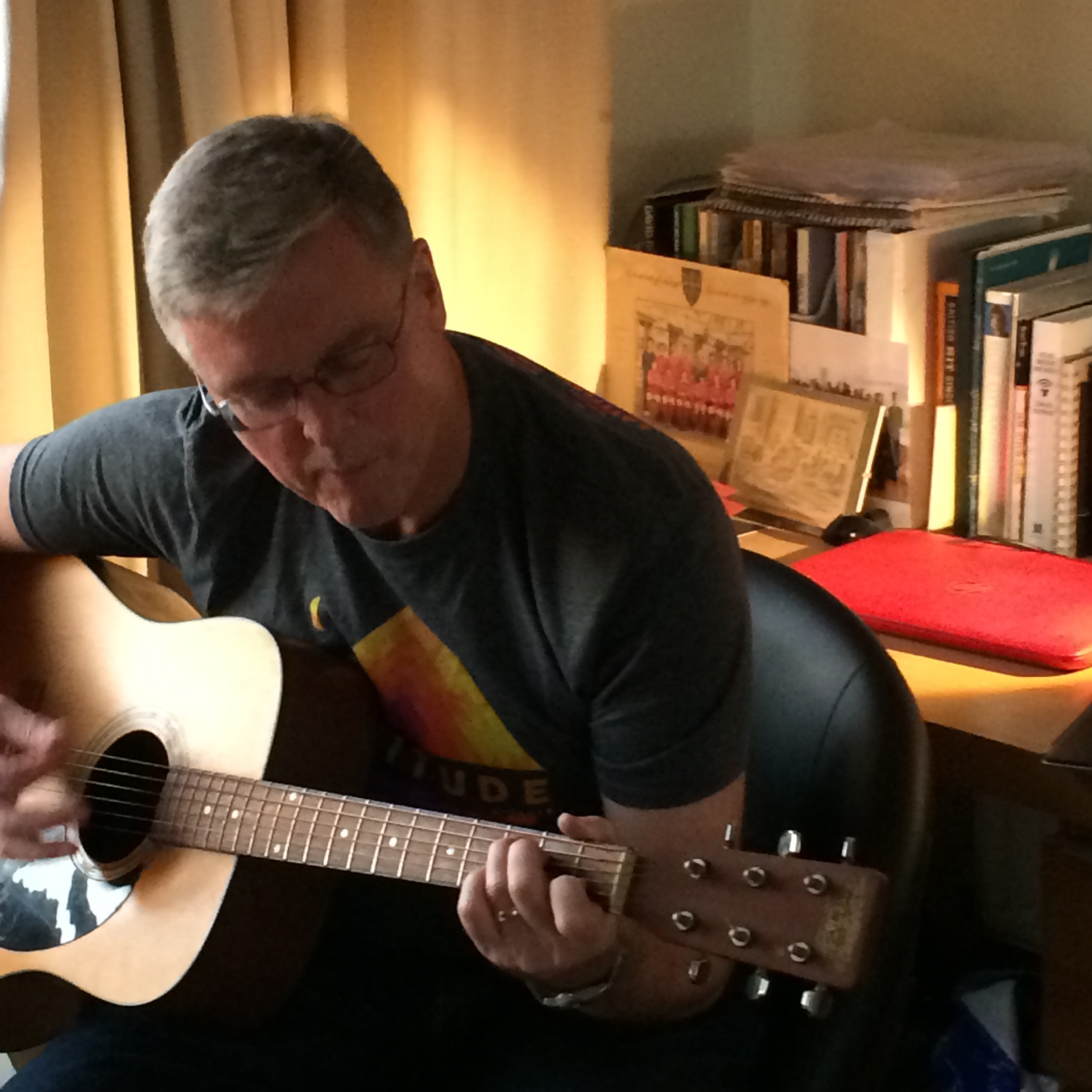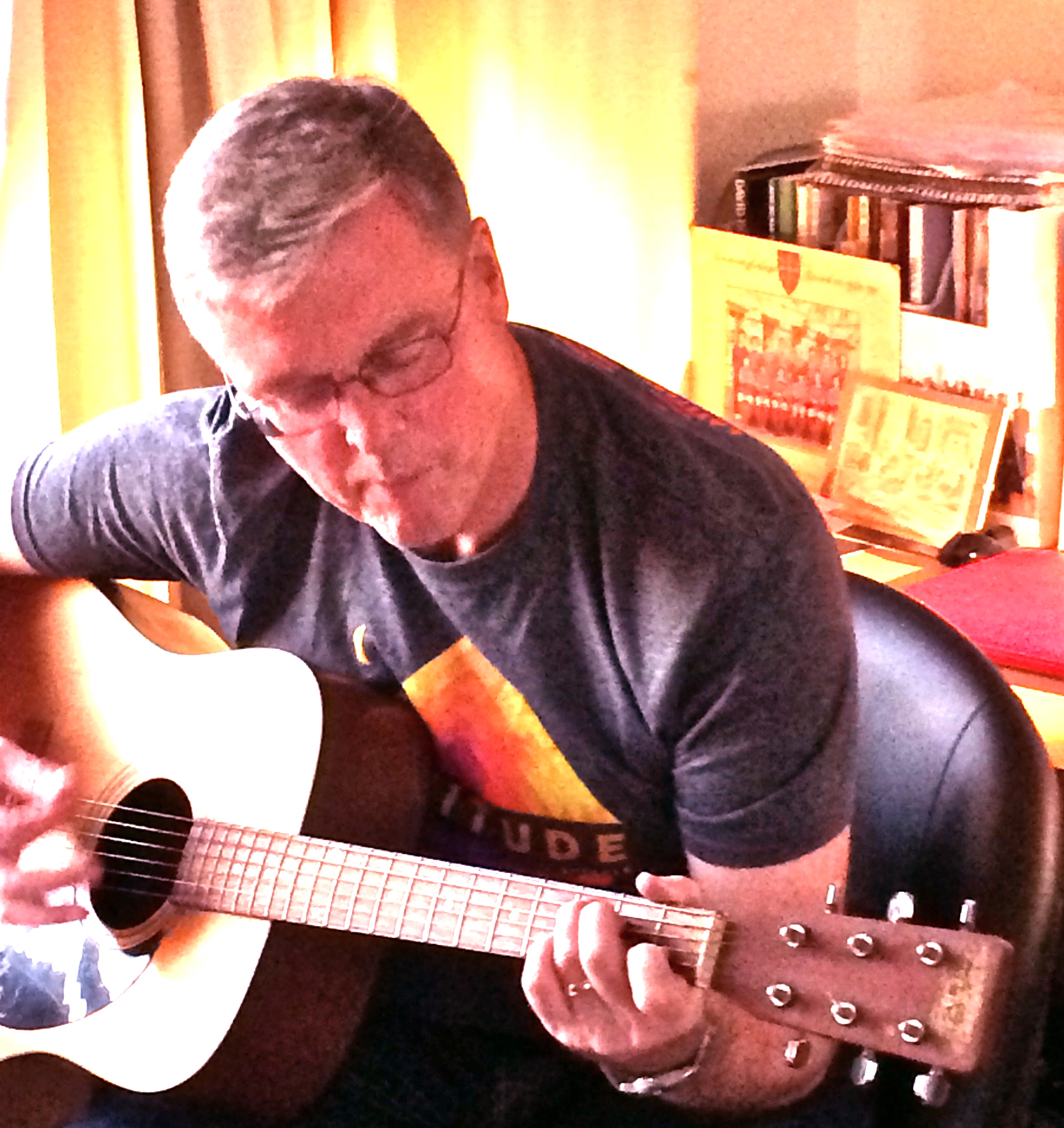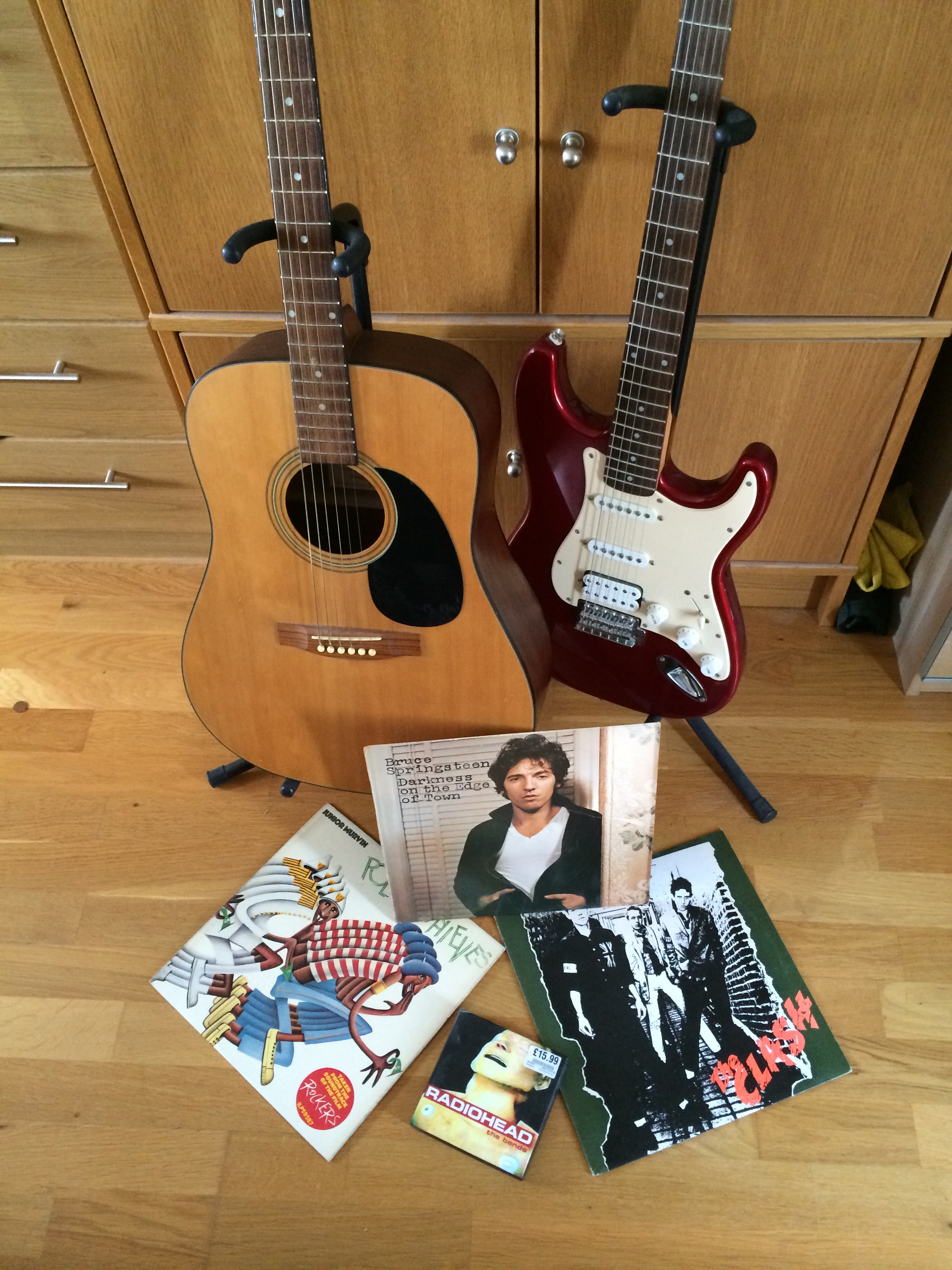For the back cover I thought about nicking the sort of thing Bob Dylan did on “Bringing it all Back Home” and Oasis did on “Definitely Maybe”. Other than themselves, a few iconic objects spread about the place. Albums to the fore. And my guitars, of course. So I tried some variations. Then I thought, what about me playing guitar? A bit pseudy, but why not?  I got Kath to take a few snaps on the iPhone.
