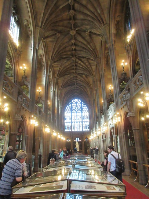 The Rylands library was founded by Enriqueta Rylands, the wife of a wealthy Manchester entrepreneur. It took 10 years to build and was opened on 1 January 1900. It’s now part of Manchester University, though in the city centre.