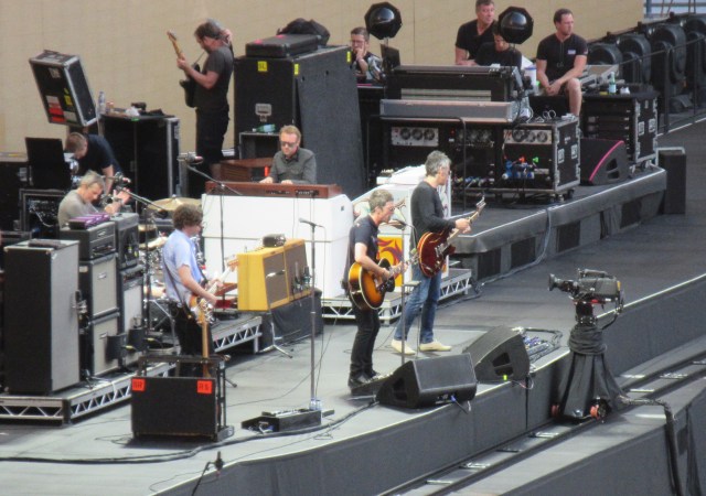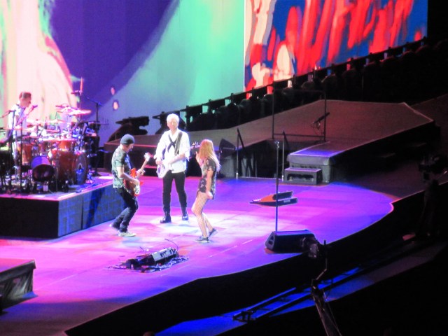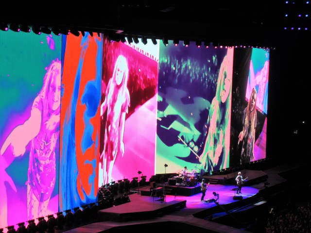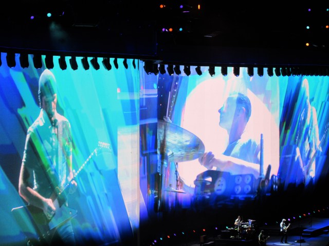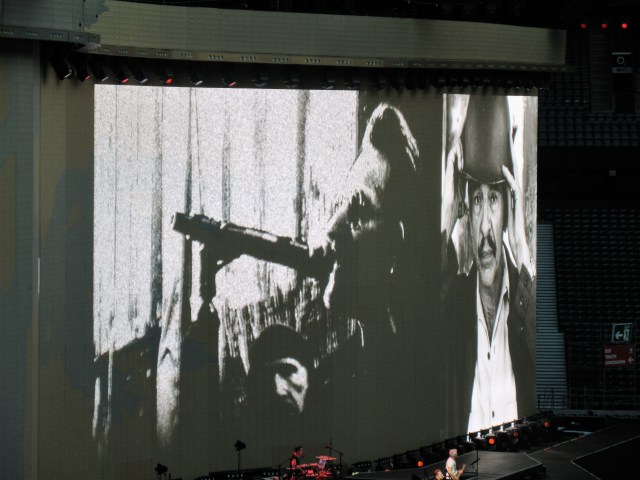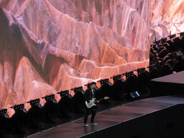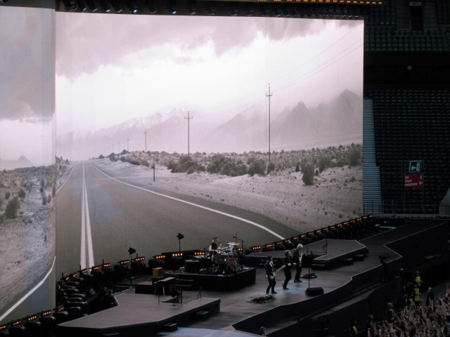 So, after that fantastic four, the band returned to the main stage and took a bow, while the amazing screen came on. Unlit, it almost looked like cardboard, with a Joshua tree shaded on part of it. Lit, well check some of the photos for a hint of the wonders. It’s fair to say the screen was a fifth member of the band this night.