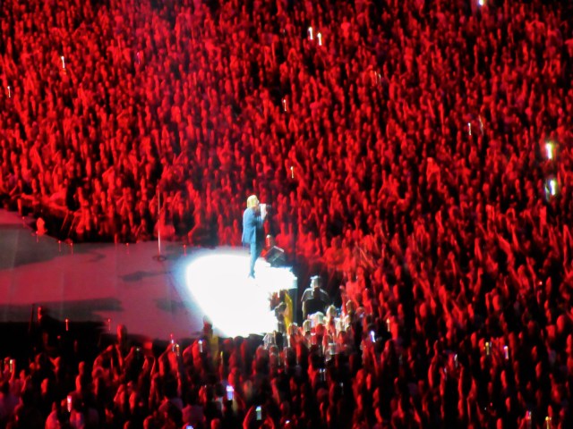 And last, inevitably, “One”. The phones out again. Communion. It’s an interesting song. Study the lyrics and you’ll see it’s that we are one, but not the same. It’s a song about a troubled relationship. But it has become a song about unity – in love. The title, the feel, has risen above the original intent. The togetherness has overcome the sadness. The celtic soul remains.