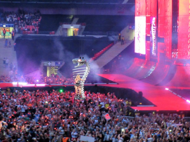 She played for two hours too, which was more than I would have expected. I think she genuinely wants to give something back to her audience and she did that and more. I really enjoyed the show – the music was brilliant, it was a huge spectacle, the atmosphere was great, especially when all the wrist bands lit up as darkness fell, and she really means it. What more could you ask for?