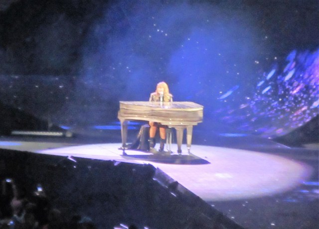 The exuberance of “Shake it Off” was followed by Taylor picking up an acoustic guitar and going back to her country roots. A nice reminder. One of the songs she sang was a stripped down version of “So it Goes” off “Reputation”, which I really liked. Later she sat at the piano and sang a lovely version of the come-down closer on “Reputation”, “New Year’s Day”. It ain’t all brash dancing, big beats and inflatable snakes!