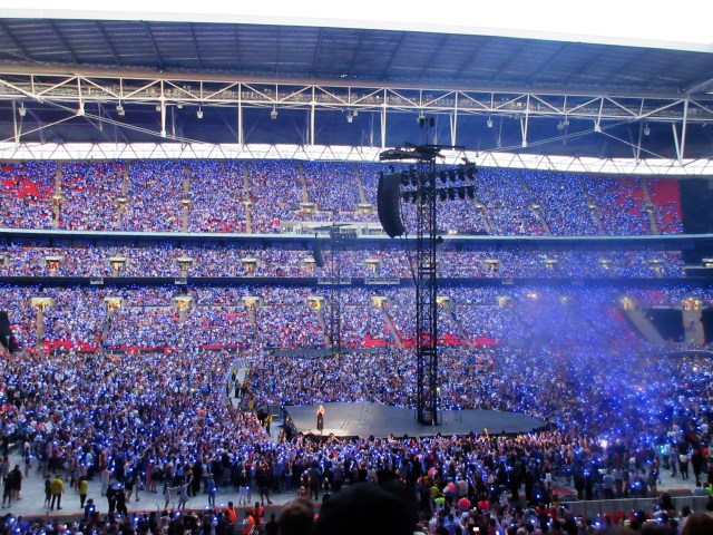 So, when I read about the tour, I thought, let’s do it. Tickets weren’t cheap, but what the hell, it will be a spectacle. And it sure was! She was doing two nights at Wembley, and the show on Friday wasn’t a sell-out, but the stadium was 90% full. No shortage of atmosphere and anticipation. The age range was quite mixed – it’s fair to say most of the people of my generation in attendance were there with their kids, or even grandkids, but the teenies were in no way the majority. I’d say the twenty and thirty-somethings dominated, with a gap in the late teens – a bit like my girls, who’ve moved on to better, cooler things (at least for now). I managed to persuade Kath to come, the seats were comfortable (not that we were able to sit down much once the concert got going) and it was easy to buy a beer – the queue for the Pick’n’Mix sweets was longer!