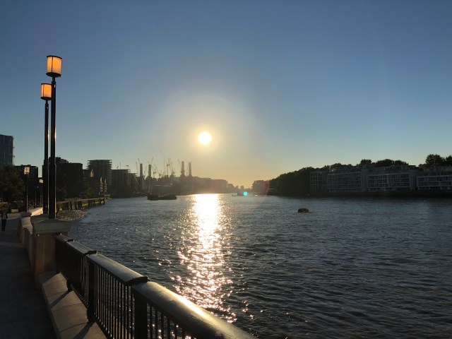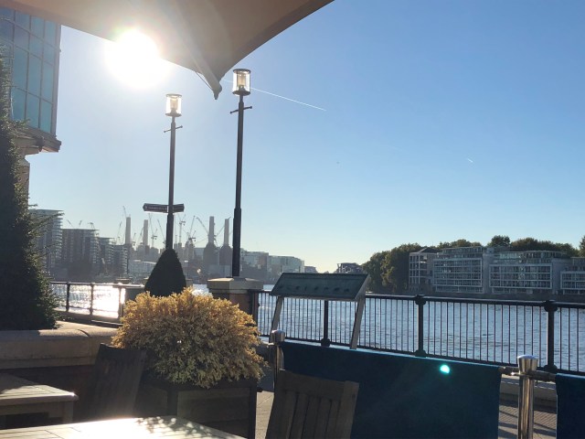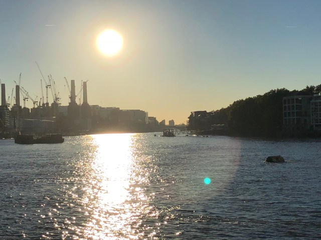 I had a little bit of time to kill between going to the Tate and seeing some friends on the evening, so I wandered down to a favourite location, the Riverside pub by Vauxhall Bridge. It’s a good place to sit outside and watch the world go by. I got a beer and went through my notes for my follow-up novel to “The Decision”. Deciding what scene to start with. Getting started soon. It was about 6pm and the sun was blazing across the Thames. I took a few shots with my iPhone, facing upstream into the sun. Battersea Power Station lurking in the background.