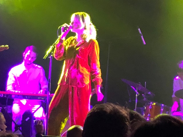 So I was hopeful I’d recognise most of the songs. And the preparation paid off, because the main set at the Dome was predominantly from the new album. In fact, the only song from “Fading Lines” was “Right Now”, the second tune played. Annelotte and the band, who I think were all new except for the lead guitarist, played with a confidence and swagger which was a step up from the previous shows – the product of a couple of years on the road and the benefit of a fine new album. Annelotte, resplendent in the baggy gold outfit which she wears on the album cover, relinquished her guitar from time to time, just to sing… and dance. She had more guitars too. The keyboard player also embellished the sound with a bit of trumpet – that French jazzy sound.