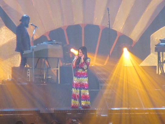 Kacey seemed genuinely humbled by having such a large audience – this is her first arena-scale headlining tour. Like Taylor Swift before her this year, she naturally had things to say about the mad world in which we live at the moment. And of course love was the answer: cue “Love is a Wild Thing” with colourful natural scenery as a backdrop. Before “Happy and Sad”, she talked about that melancholy you can feel when you’re having the time of your life, because you know it won’t last. To which the answer can only be, enjoy the moment, carpe diem. Easier said than done sometimes. Her short tribute, “Mother”, sung alone in darkness, was very touching too. Especially when that segued into “Oh What a World”!