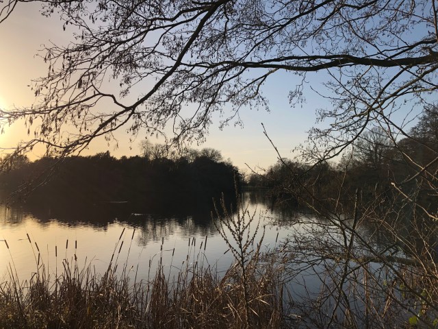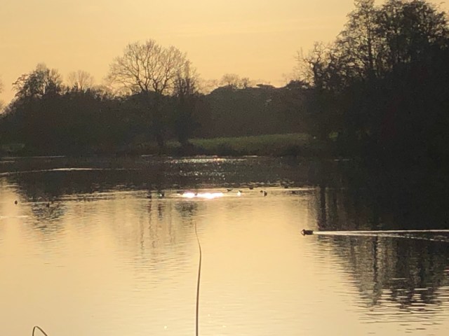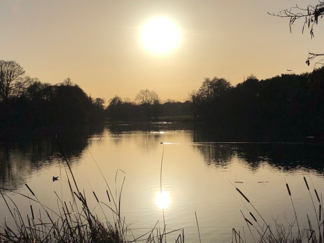 I went for a cycle this afternoon – just a quick spin, which took me past Osterley Park, which is sandwiched between the A4 and M4 just west of Ealing. It’s a lovely park, a place we used to go to a lot when the children were young. There’s a bridle path which winds around the edge of the park, and as I cycled past the lake, around 2.30, I just had to stop and take a few shots pointing west, into the low sun. It looked gorgeous. Hopefully these photos give you some idea.