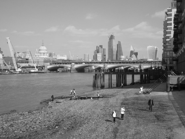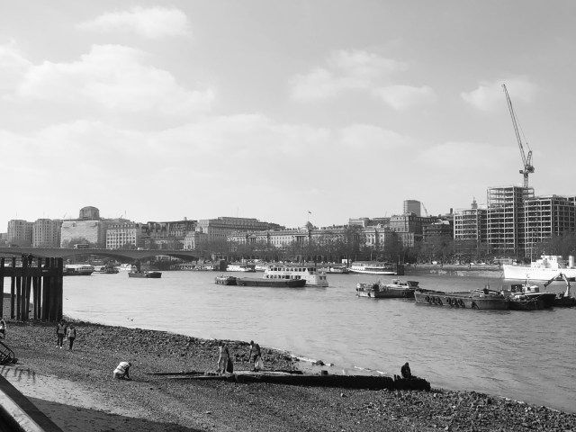 These days I spend quite a lot of time in this area, usually walking between Vauxhall or Waterloo and the Tate Modern. I took these shots on Thursday. The Thames at low tide in this area always reminds me of a book I read a few years ago called “The Chimes” by Anna Smaill, which centres on a group of people making a living scavenging for precious metals in the muddy, rocky beds of the Thames. In a dystopian future of course! I think the people in the first and last photos were cleaning up the place, ridding it of plastics, etc.