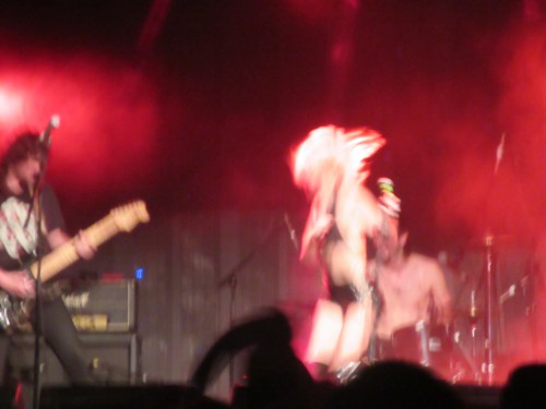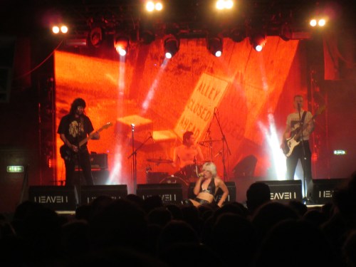 Beyond the two songs I mentioned above, I couldn’t tell you what they played. It doesn’t really matter. They just rocked. Amy did a fair bit of crowd surfing, but wore her parka for the last go, as her top seemed to find itself undone on the previous incursions. She swigged what looked like champagne (or Prosecco?), although she had a bit of water too. She expends a lot of energy on stage, for sure. The boys shout the choruses and lay down those riffs and rhythms. It is rock’n’roll. Nothing more, nothing less.
