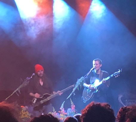 The concert was terrific. I’d not been to SWX before, and liked it. Medium size, a few hundred, maybe a thousand. It was sold out, and the band got a great reception, from a mostly millennial crowd (with a sprinkling of older types, like me!). Looking at set lists from recent shows , it looked like the newer songs would dominate, but that it was unpredictable, as the set varied every night. And we got lucky: there was a great balance of new and established songs. In fact, almost all of my favourite songs got an airing, including “Parallels” about half way through. That was a bit of a bonus, as I hadn’t been expecting to hear it, going on previous set lists. “Shark Smile” was second song in and was greeted like an old friend. Their bounciest tune, though rivalled now by the bluegrassy “Cattails” off the new album. The crowd loved that one too. “Paul”, which might be their best known song, followed “Shark Smile” – always good to start with some crowd pleasers.