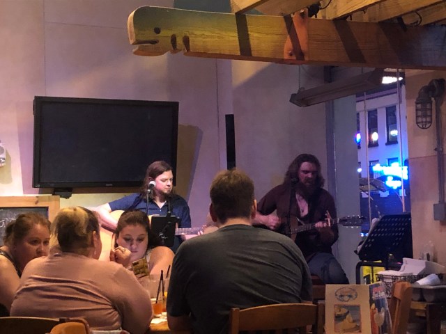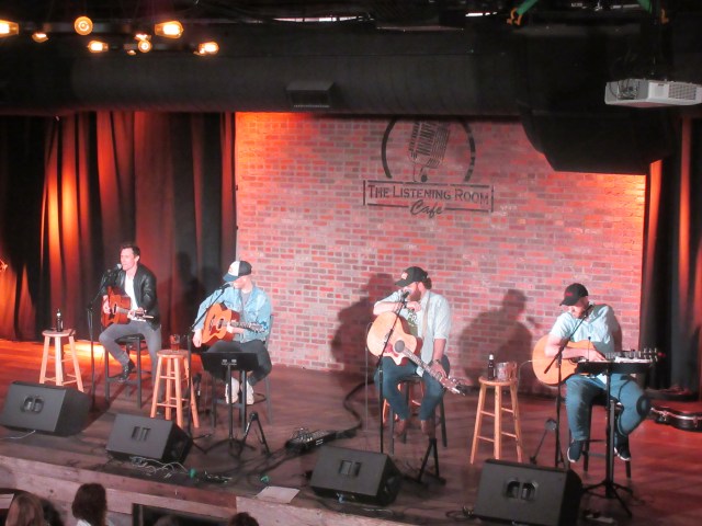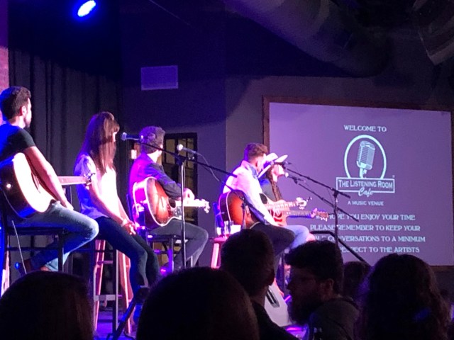 The Listening Room café turned out to be quite a lot bigger than expected, and was more a restaurant than a café; but the concept was a good one. Four different artists each sang four songs, taking turns song by song, rather than playing all their songs at once. Typically the singers were people who made a living writing songs in Nashville, and in some cases, were looking to make a name as performers in their own right. From what they said as they introduced their songs, most had been living and working in Nashville for a good number of years. On the first occasion we went there the singers were Hannah Bethel, JD Shelburne, Ryan Calhoun and Stephanie Owen (accompanied by guitarist) who was also the host. They were all pretty good. I really liked Hannah Bethel, whose sound and style was right up my street, and JD Shelburne had a hint of Bruce in his songs and delivery, which naturally appealed. I looked up Hannah’s music afterwards, and there wasn’t that much on Spotify; but she has just released a third track called “Rhinestone Rodeo” which she played on the night, as well as her second release “Train”. Hope she makes it over to London some time.