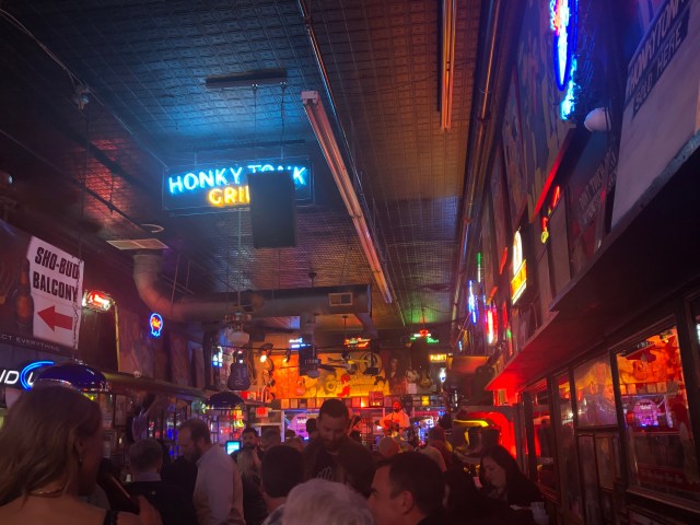 We stayed downtown in a very pleasant apartment on Polk Avenue, surrounded by building works and a parking lot – two common features of central Nashville. From there it was a short walk down to lower Broadway, which is where we ventured on our first evening. Crazy place, and what a noise! The entire street was lined with bars with their windows open and bands playing. The streets were packed. Tourists, obviously, though from the rest of the USA mostly. Not so surprising, I guess, given the size of the country. For us in London, the comparable experience would be going down to Leicester Square and Piccadilly Circus, something we generally try to avoid! But, as a tourist myself, I enjoyed Broadway. It was buzzing, the vibe was friendly, and all the music was very enjoyable, if you stopped to listen. Country-ish, but generally veering towards the rockier side. The spirit of Lynyrd Skynyrd lives on, especially in the noisiest establishment of all, Kid Rock’s place.