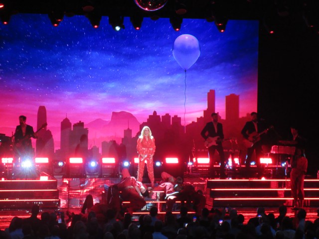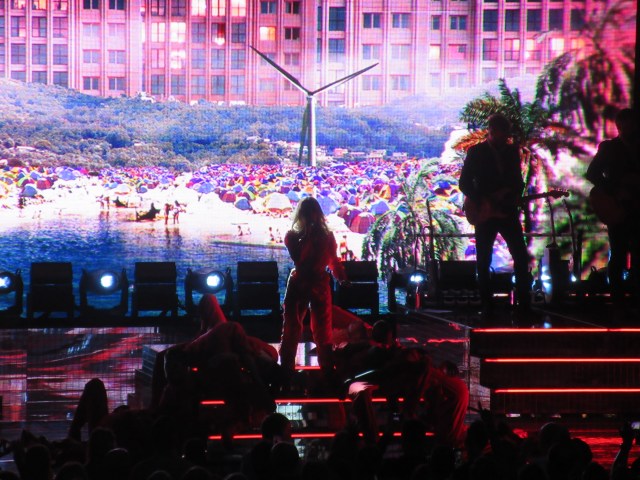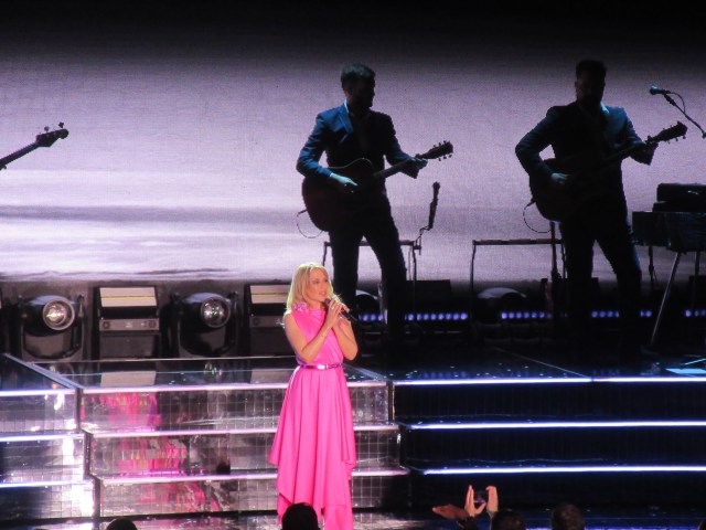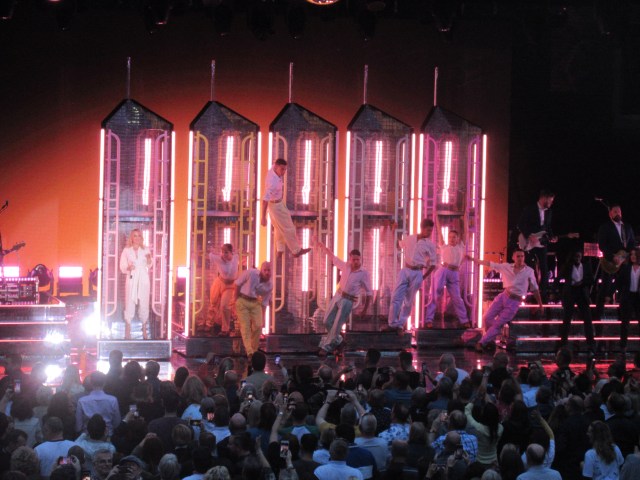 It was the early hits that received the greatest acclaim. “I Should be So Lucky”, early on, was a bit of an anthem, as was the once-excruciating duet with Jason Donovan, “Especially For You”. “Do The Locomotion” near the end was another. My favourites were a bit underplayed, especially “What Do I Have To Do?”. Not that it mattered very much; it was all just a lot of fun. The sets were elaborate, there were loads of dancers, and Kylie went through a fair number of costume changes. All very elegant. All part of the mature artist, still drawing on her past, still exuding the energy and sheer enjoyment of those great pop songs, but adapting it to the present. A masterful transition.
