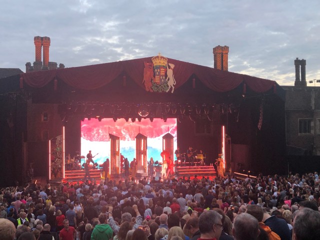 Which brings us to the show at Hampton Court. The weather was fine, but we were in the covered area, just in case. It’s slightly further back than I’ve been for previous concerts, so the photos are taken from a longer distance. But what a great show it was! All the hits, a total celebration. Everyone stood up from the first moment, and stayed up for the whole show. Much swaying, tapping of feet, nodding of heads, clapping, singing along. Not too extravagant – the average age was middling! But a total joy.