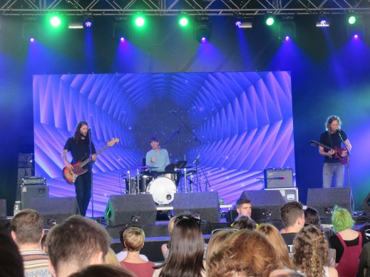 Then it was time for the one I cared about most. Honeyblood in the Communion tent. I got there with about 15 minutes to go, with the sound checks still going on. There weren’t many people around at that point, and I just hoped that plenty would turn up. They did – the place was pretty full as the show got going. It was only half an hour, and Stina obviously decided to go for broke and play the rock’n’roll. Makes sense, and it went down really well. What was good to see was a lot of young people down the front dancing and singing the words. Like they do for all popular bands; but this was one of those occasions where I really wanted the band to do well, and not be relying on plaudits from oldies like me. It’s an issue for any indie band that draws its inspiration from the music of many decades – you might end up with an audience a fair bit older than you are. I always wonder how that feels. Grateful for the money and the support, I’m sure, but wondering what happened to your own generation. Anyway, it was the perfect short set: the singles from the new album “In Plain Sight” and the no-nonsense classics from the first two albums. Real high energy, and Stina and her band looking like they were enjoying themselves. For anyone who loves Honeyblood, this was the setlist as I recall it: The Third Degree – Super Rat – Glimmer – Killer Bangs – Sea Hearts – Babes Never Die – She’s a Nightmare – Ready for the Magic. You can’t get much better than that!