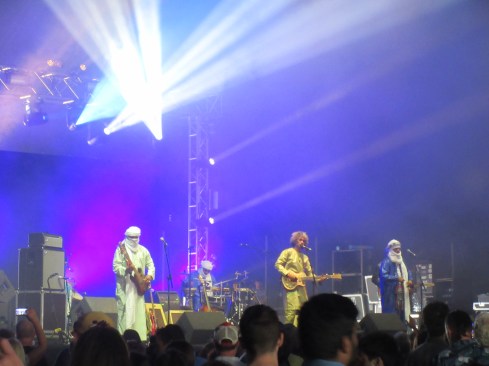 I stayed longer than planned at Montrell, so I missed the first half of Tiniwaren, headlining the DIY stage. But the second half: wow! I know the band, have listened to a bit of their music, but had never seen them live. They were extraordinary. They look extraordinary, for a start. Dressed for the Sahara – they are Tuaregs from Northern Mali. But the thing that really hooked me was the sound of the guitars. There’s a kind of drone in the background, and the guitars – there are a few – jangle and soar over that. Sometimes with a heavy distortion that Jimmy Page would have been happy to emulate. The desert blues. Some years ago, I really liked the music of Ali Farka Toure, also from Mali. Tiniwaren are following in his footsteps, but with a bit more of a rock feel. I felt a shiver down the spine at one point listening to those guitars and the insistent chants that accompanied them. It was the revelation of the festival for me.