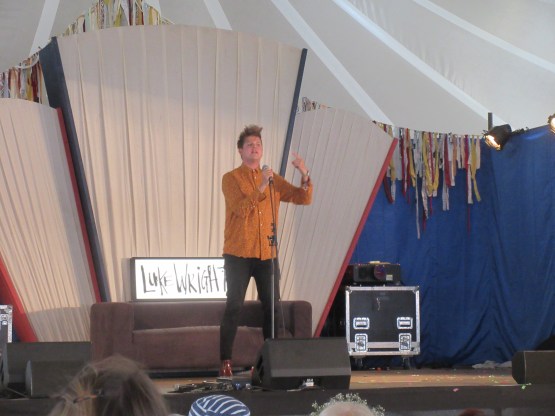 The first band I saw today was The Teskey Brothers. They were on the Sunrise Arena, and played to a pretty big crowd. They are an Aussie band – the first of many – and play good old-fashioned 60s soul and blues. They do it very well; the singer (one of the two brothers) has a great soulful voice, in the Otis Redding/ Sam Cooke mould, and some of the guitar had a real BB King feel to it. All good! From there it was over to the re-named BBC Sounds tent for Kero Kero Bonito, a young band from London, who played bouncy pop-rock. I then went solo for my one excursion this year to the Speakeasy to see the poet Luke Wright, a Latitude perennial. Fresh from touring with Dr John Cooper-Clarke, a kindred spirit, he was his usual mixture of trenchant social observation, sharp humour and dramatic delivery. His poem where the only vowel allowed was “u” was amazing – really clever and crudely funny. It’s fair to say that “u” may be the most guttural of the vowels! There was some sentimentality too, about his son, now eight, whom he doesn’t see enough of, post-divorce and being on the road a lot. He wears the hurt on his sleeve, and in his writing. He ended on his brilliant defence of prententiousness, “ Embrace the Wank”. His delivery on that one is extraordinary. I recommend seeing Luke perform if he is ever in your vicinity. You don’t have to be a poetry geek to enjoy it. It is the performance that brings the words alive.