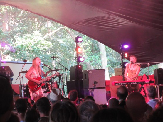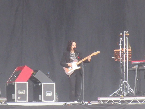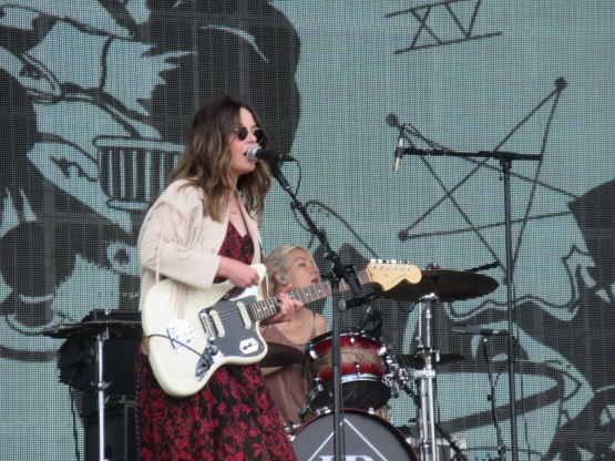 Next up was Anna Calvi, on the Obelisk, the main stage. For some reason I’ve never really heard her music. But I was hugely impressed, especially by her guitar sound, very raw. The songs live, were visceral, and the bass lines pounded. It was a tour de force, and I will definitely be giving her back catalogue a proper listen. After that it was back to the BBC Sounds tent for Jenny Lewis. She’s an American singer, much admired in the music press. She sang with a band called Rilo Kiley for a while. They made some great music. West Coast rock, but with some astute lyrics. They made three or four songs which have pride of place on my Car Songs playlist, along with one of Jenny’s solo pieces, “Just One of the Guys”, which I love. I’m less enamoured with her new music, which I think dominated the show. It was good but not great, and I moved on before the end, to catch something completely different…