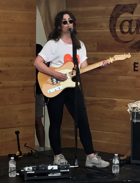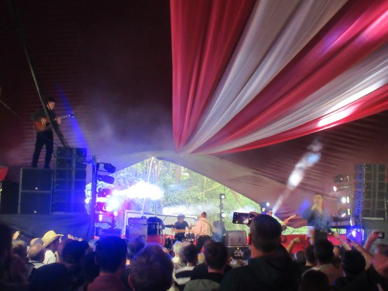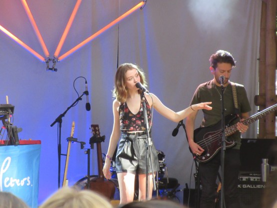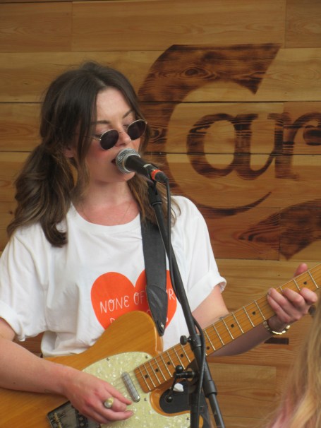 The Danish Quarter, or Danish bar as we call it, arrived a couple of years ago when Carlsberg took over from Tuborg as monopoly supplier of lager to Latitude. It’s all there is, so you drink it. The bar itself is a good meeting point and there’s a great atmosphere in there at times, especially late at night, when people get dancing. Luke Wright had earlier had a dig it it as a tipping point in the commercialisation of Latitude, for it ousted the Poetry tent, which was merged with the Literary tent and re-named the Speakeasy. The Speakeasy is excellent, but the number of poets getting a chance to perform at Latitude has dropped dramatically. That is a real shame. But the Danish bar delivered a real treat for me today, as Stina from Honeyblood played a solo set at 4.30!  I’d seen her do this before, at Leith Theatre in Edinburgh last year, at the Hidden Doors festival. Her songs work well in the context. As Stina put it, the angry songs – and there are plenty of those – become sad songs. The set overlapped with the earlier full band show, but we had a couple of different ones from the first album: “Bud” and “Fall Forever”. That first album obviously means a lot to her; and its rawness and simplicity is ideal for live performance. It was an intimate set, especially once the security guard had relented and let us move close up – at Stina’s request. The place was full and she received a great reception. She looked delighted to be doing it, which was good to see. And she is talking about taking the Lonerblood show on the road. Hope it makes it to London.