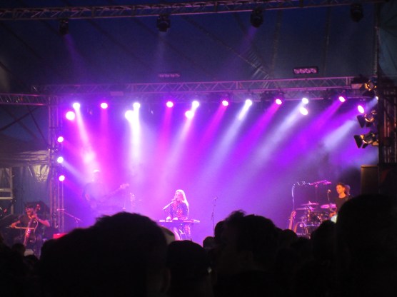 We stayed on at the Obelisk to catch the stars of Sunderland, The Futureheads. I’ve always quite liked their jerky indie beats. “Decent Days and Nights” was a good song, and their cover of Kate Bush’s “Hounds of Love” was a quirky delight. They started the show in good form; but after three songs the music stopped. An electrical storm was approaching and there was a power down. I used the opportunity to wander down to The Alcove, with the intention of seeing a jazz-funky duo called Project Karnak. I’d heard a really good track called “Temple” on Latitude’s Spotify playlist. On the way down there was something close to a hailstorm. In the Alcove I hung around for about half an hour before a band called Heron Dance came on. They were good, but not Project Karnak! I never did see them.