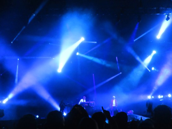 For us, Stereophonics were just the warm up though: because now it was time for Underworld. One of the great electronic groups of the 90s and 2000s. Core members Karl Hyde and Rick Smith. I particularly loved their 90s albums, “Dubnobasswithmyheadman” (great title), “Second Toughest in the Infants” and “Beaucoup Fish”. And of course they are responsible for the great British anthem “Born Slippy” with its infamous cry of lager, lager, lager! I’d not seen them live before, but was expecting great things. And I was not disappointed – it was truly amazing. An extraordinary confluence of massive beats and dazzling lights, washes of synth and huge drops. The place, under the night sky, was ablaze. The crowd, silhouetted against the lights, arms aloft. Karl Hyde pranced around, submerged in dry ice, his vocals as disembodied as ever. “King of Snake” was a highlight, but the moment of moments was at the last, of course. As soon as the opening motif of “Born Slippy” echoed from the speakers, the place went ape. And lager, lager, lager truly was a spiritual experience! More shivers down the spine throughout. At the end we were all exhilarated, on a high. This was as good as the live concert experience can get, the moment when the Obelisk, which is often so annoying – with all the picnickers, people talking, showing off, paying scant attention to the music – came into its own. A large scale arena for a large scale phenomenon. There was only one thing to do at the end: go back to the Danish bar, drink some lager and talk about it!