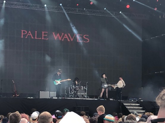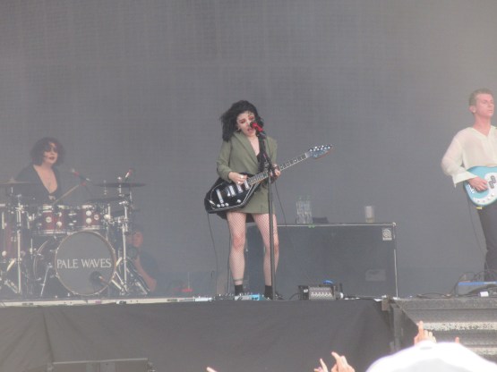Back to the Obelisk next for Pale Waves, one of Connie’s favourites. They are a Manchester band, with an interesting look. Singer/guitarist Heather Baron-Gracie and drummer Ciara Doran both favour Goth, while the bassist and guitarist are classic indie boys. The music, with its big choruses, reminded me of a lot of 80s stuff – Cyndi Lauper sprang to mind for some reason – and Heather’s voice had a warble which was similar to the sadly departed Dolores O’Riordan of the Cranberries. The songs were classic teenage angst and in my notes I wrote Goth pop. It got a great reaction from the crowd – this is clearly a band going places.