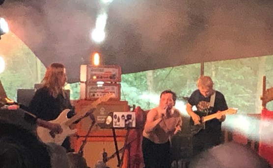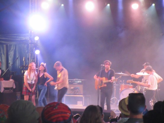 And then it was more noise. A very big noise, generated by the awesome Pigs Pigs Pigs Pigs Pigs Pigs Pigs, or Pigs x 7 as they are commonly known. They make songs – songs? – that resemble the architecture of their native Newcastle: dark and foreboding and with a certain magnificence. A big blast of raw power, with singer Matt Baty howling over the riffs. God knows what he is singing. They come from the school of Black Sabbath, bulked up for the modern age. As much punk as metal, but a brutal combination of both. Like Crows, but even heavier! And so it proved live. It was a phenomenon. At times it feels like the chords are being wrenched out, like having a tooth extracted with no anaesthetic! At first I thought it was a bit ponderous (like Sabbath can be) but by the end I was won over. They finished with “A66”, which I know and rather like. It’s about a road up north. Any more than that I can’t tell you. It was pretty wild. An experience I may repeat at Green Man and End of the Road – if I can take it.