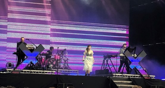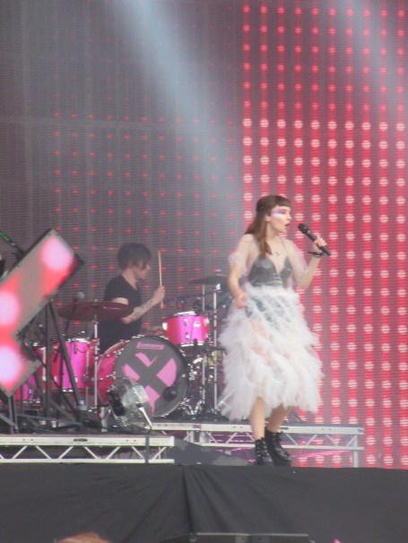 Yes, it was time for the very wonderful Chvrches. They were on the Obelisk, second on the bill, just like in 2016 when they played one of the greatest shows I have seen at Latitude. Since then we have had a new album in 2018, “Love is Dead”, and a lot of the songs came from that. I’d put it third amongst their three albums – it’s a very accomplished electro-pop piece, but with less of the edge and variety of the first two, particularly the debut “The Bones of What You Believe”. My two favourite songs, “Lies” and “Tether”, have long been ousted from the set, though “Sink”, “Recover” and “The Mother We Share” survive – the latter always one of the closers. The show was a dazzling display, with Lauren Mayberry wearing a translucent dress that almost looked like a wedding outfit. You wouldn’t wear the black platform boots down the aisle though. Unless you were a Goth, I suppose. “Get Out”, from the new album, was a great opener, and set the tone for most of the set. They had obviously thought about the audience and said, we’ll play all our dance tunes. And it worked a treat – but left me wanting a bit more light and shade. I loved “Clearest Blue”, and “The Mother we Share” is always an uplifting moment. And I won’t quibble – you have to play for the moment. So, a triumph; but I’m looking forward to seeing them in Princes Gardens in Edinburgh on 11 August. Back in Scotland – will they go back to their roots a bit more? I hope so.