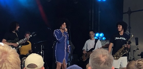 Afterwards, in the BBC Sounds tent, I watched a little of Sons of Kemet, one of the high tempo jazz bands that are a bit of a trend at the moment. Sons of Kemet featured the obligatory wild saxophonist and a tuba player who was in effect playing the bass lines. Louis was enthusiastic about them. I was so-so, but another of the ilk was to come later. Read on. I got myself some food and sat on the grass/dust by the Lake Stage to eat it. At this point a soul singer called Celeste came on. She sounded good. After I’d eaten, I ventured forward and caught her show properly. She and her band were excellent. She had a great voice and the band played a cool accompaniment. It reminded me a lot of the music I used to love in the 80s and the 90s – the likes of Anita Baker, Erykah Badu and, yes, Sade. Two songs near the end stood out for me: “Love is Back”, which had a great sax solo, and a lovely balled called “Strange”, with just Celeste and the pianist. There was a lovely, simple lyric which I noted down: Isn’t it strange, how people change, from strangers to friends, from friends to lovers, and to strangers again. Check out Celeste – she has soul.